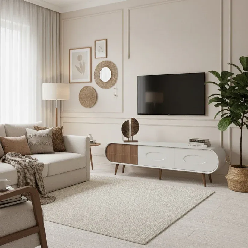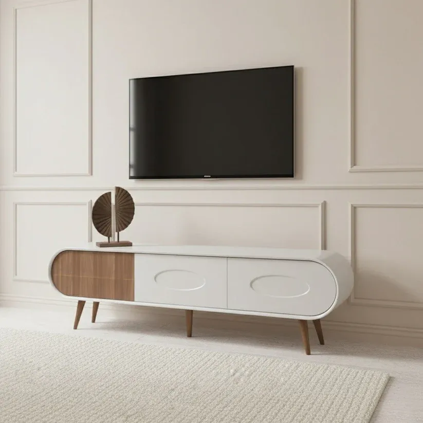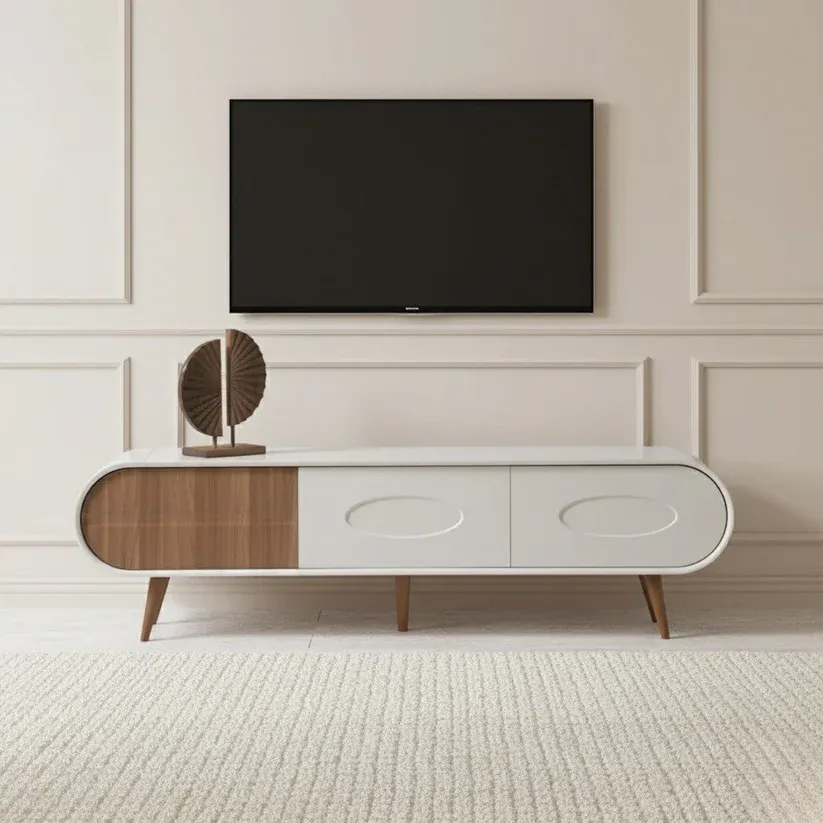 The Discovery TV Unit Cream Walnut 200cm blends contemporary style with practical storage, making it the perfect centerpiece for your living room. Featuring a refined cream and walnut finish, it brings warmth and sophistication to modern interiors. Supported by sturdy solid wood legs, this unit offers both durability and natural charm, ensuring it remains a lasting addition to your home.