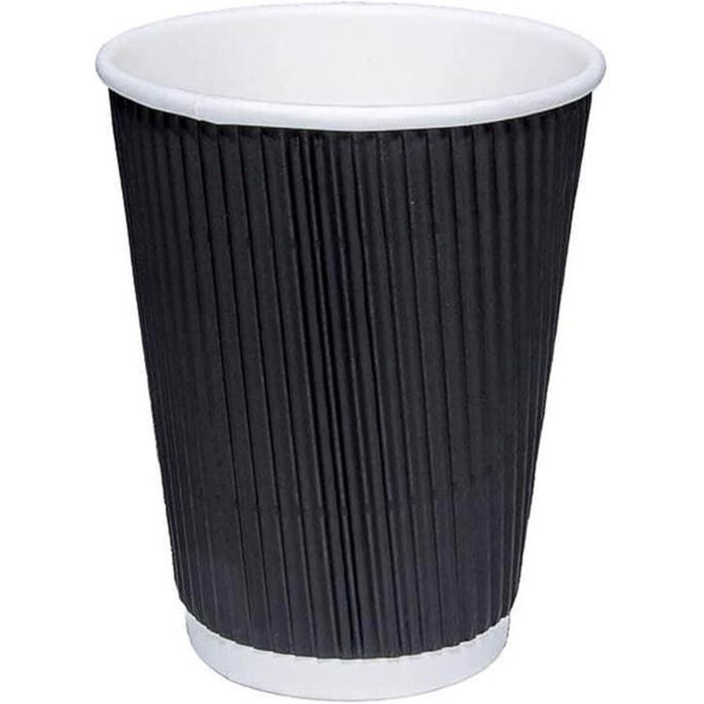 Disposable Heavy Duty Coffee Paper Cups| Black Ripple Cups Durable Thickened Hot & Cold Cups Paper Cups (8Oz-25 Pack)