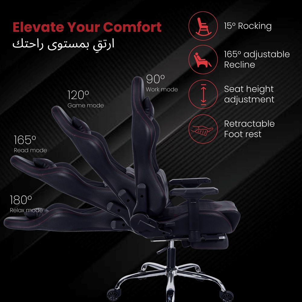 RETRACTABLE FOOTREST: Extendable leg support combines with synchronised linkage armrests that follow your reclining motion, creating full body relaxation for ultimate comfort during long sessions and extended use.