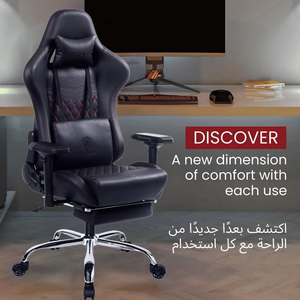 The Dowinx Multi-Functional Ergonomic Gaming Chair combines comfort with practical functionality for extended work and gaming sessions. The USB powered massage cushion targets lower back tension, helping to reduce fatigue during long hours at your desk. The retractable footrest provides leg support when you need to relax, while the innovative linkage armrests move seamlessly with your reclining position to maintain continuous arm comfort. Adjustable neck and lumbar pillows ensure proper posture alignment, reducing the risk of discomfort and strain. Crafted from high quality PU leather, this chair offers durability alongside style for both home and office environments. The ergonomic design promotes better posture throughout your day, whether you're working on important projects or enjoying extended gaming sessions. Quick assembly means you can start experiencing enhanced comfort without lengthy setup time. This chair enhances your workspace, turning it into a more comfortable environment, allowing you to focus on what matters most while maintaining proper support for your body.