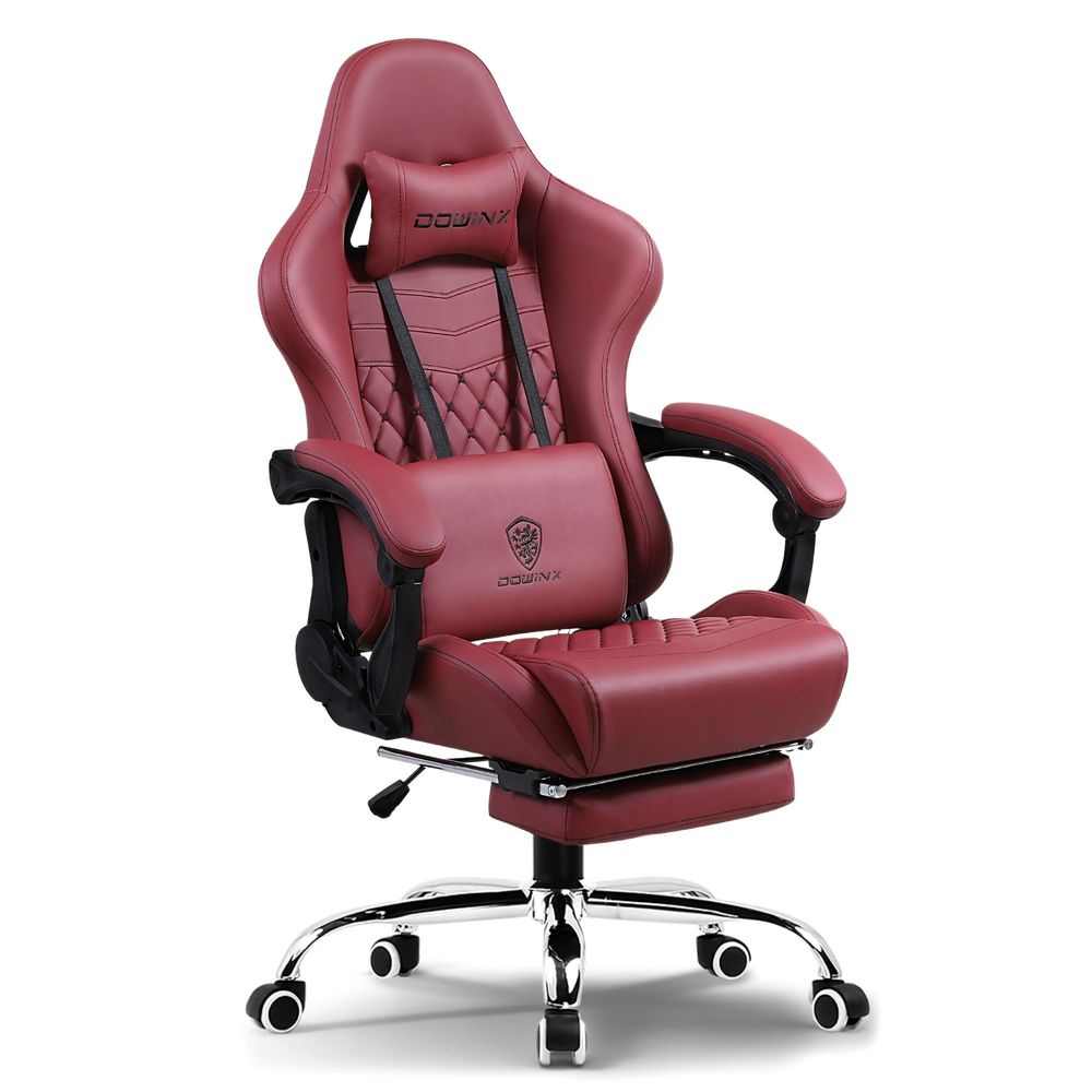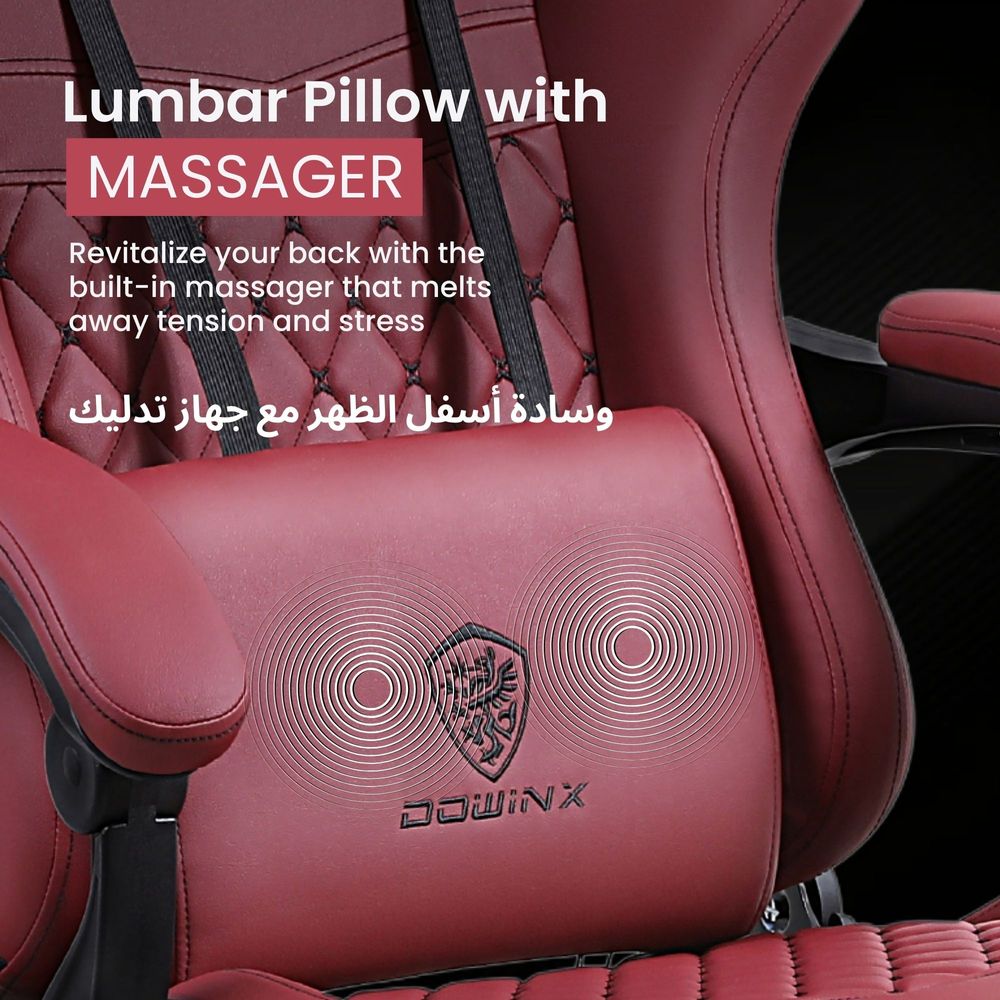 Dowinx Multi-Functional Gaming Chair, Ergonomic High Back Reclining & Height Adjustable PU Leather Computer Chairs with Massage Cushion, Neck & Lumbar Support, Footrest (Maroon)