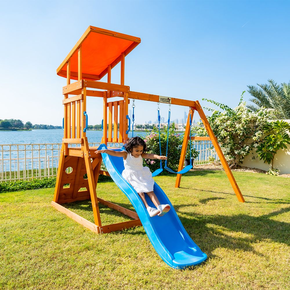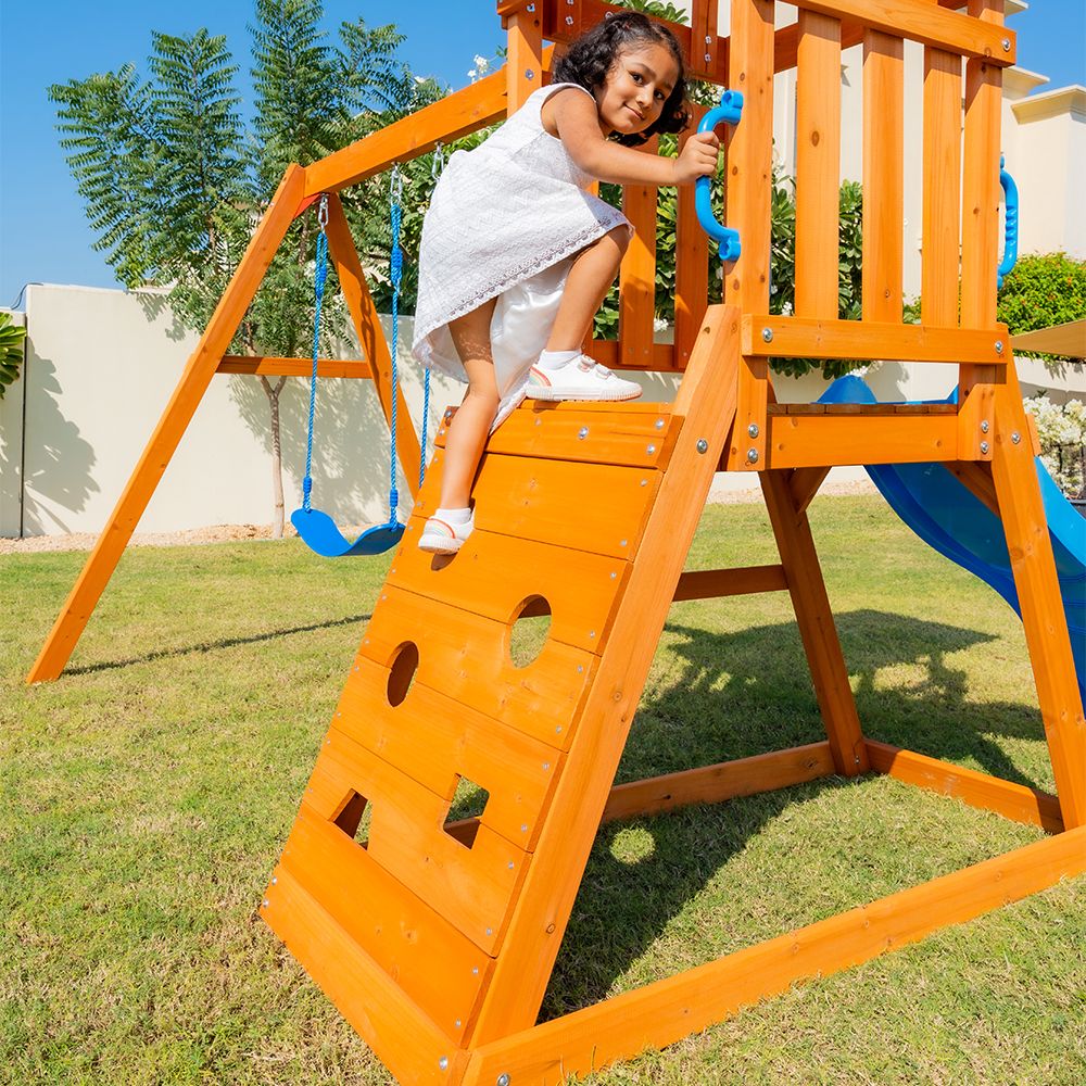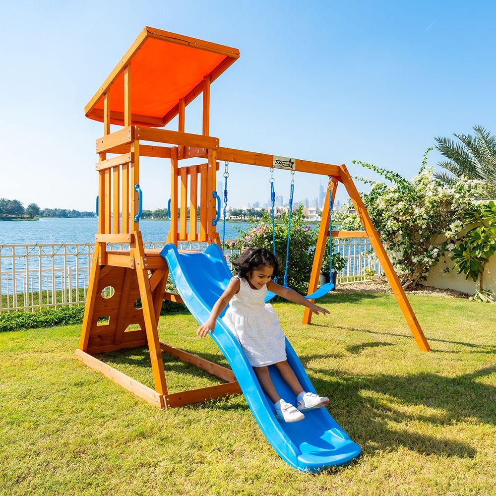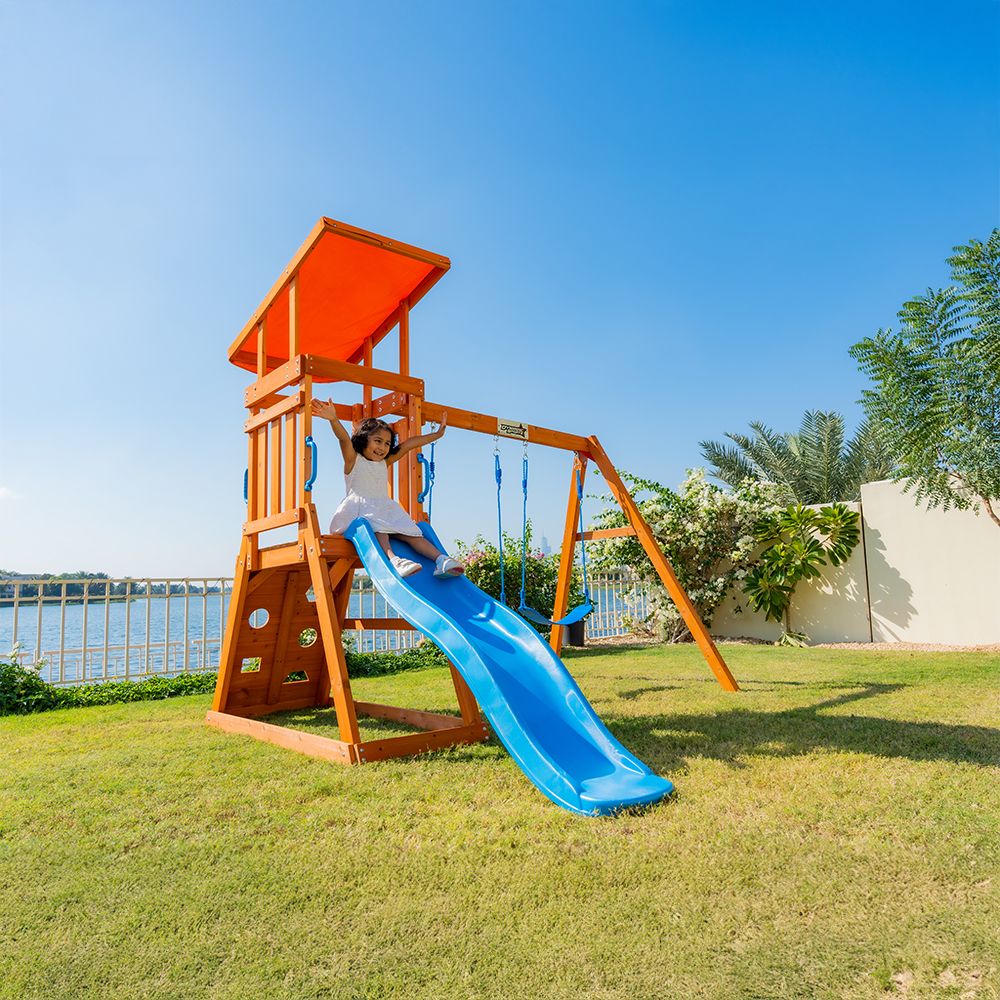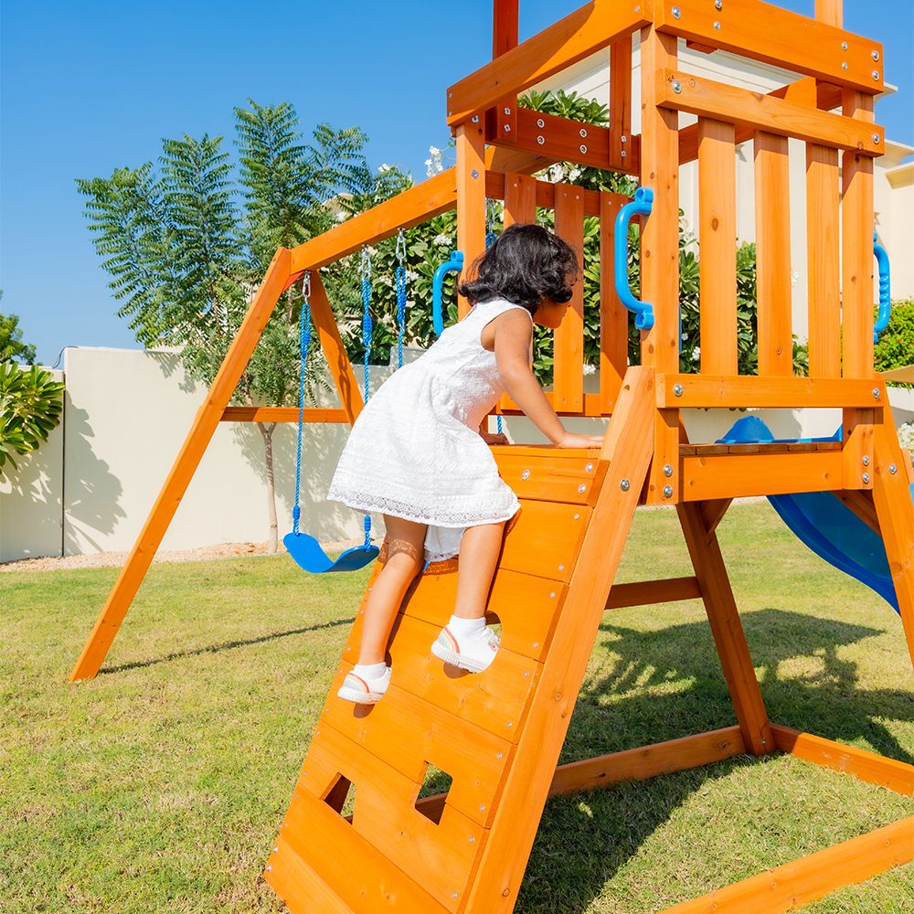 The slide helps children develop their motor skills and coordination