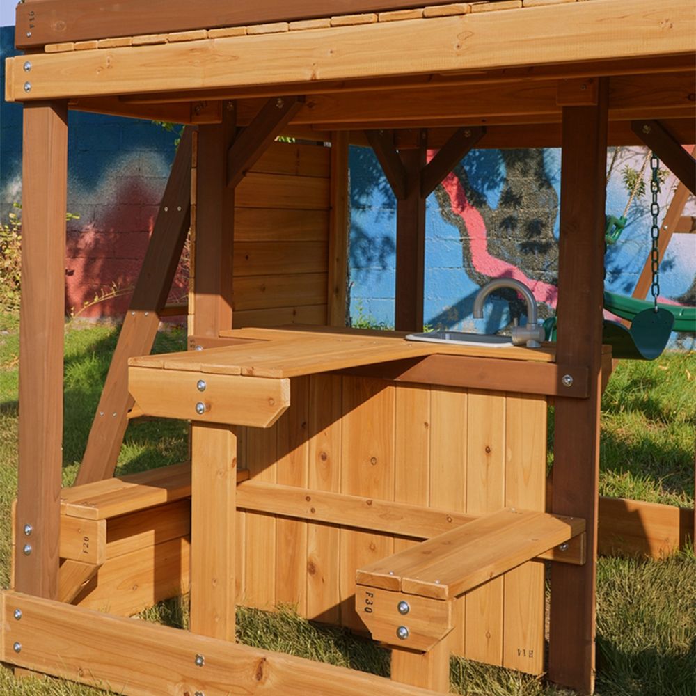 Exciting Features: Includes a wave slide, rock wall, shaded clubhouse, and sandbox