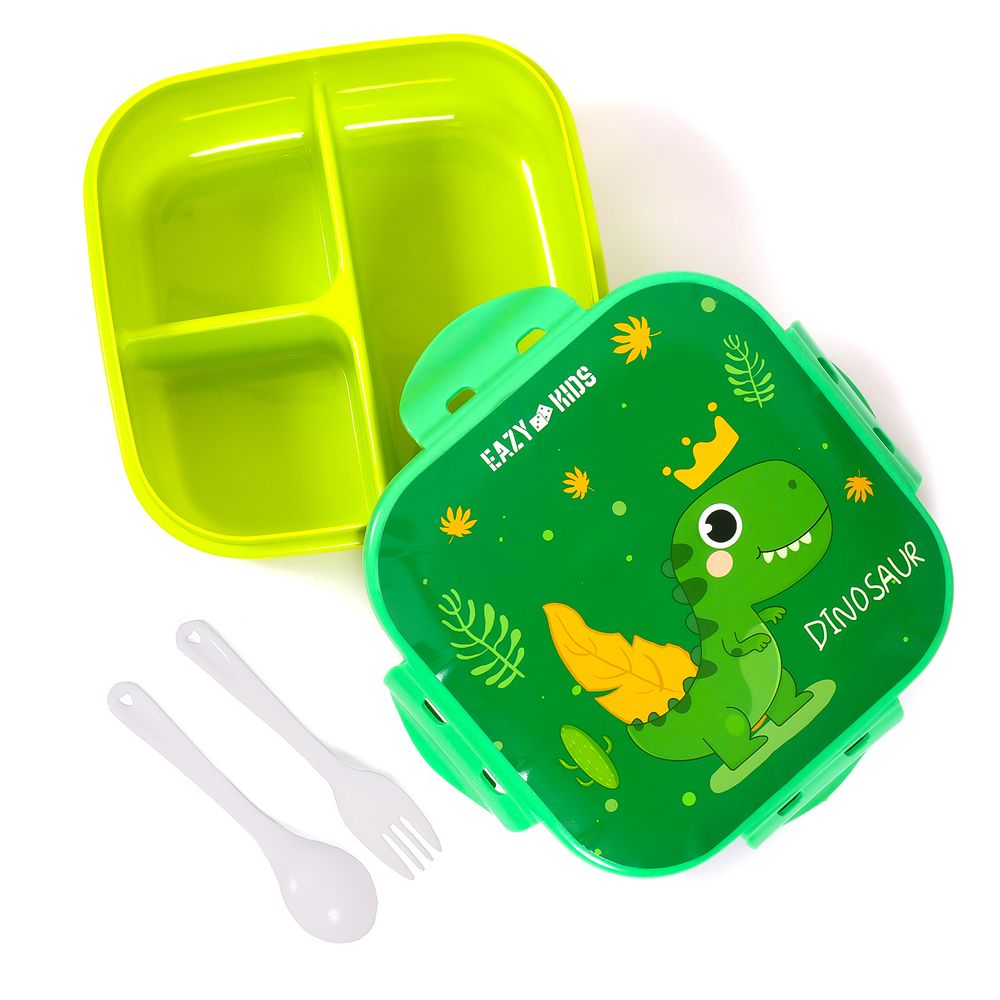 Eazy Kids Lunch Box and Water Bottle With Bag - Dino Green