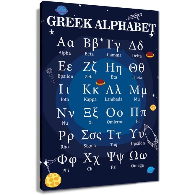 Educational Greek Alphabet Posters For Classroom Wall Art Prints Canvas Learning Painting Modern Ancient Letters Decor For Bedroom Framed Size 12X18Inch