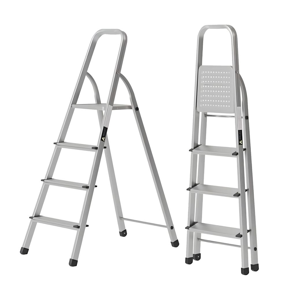 Egardenkart Aluminium Step Ladder for Home - 4 Steps | Anti-Slip Foldable Ladder for Home, Kitchen, Garden, Office | Lightweight, Portable Folding Ladder with Grip (Silver)