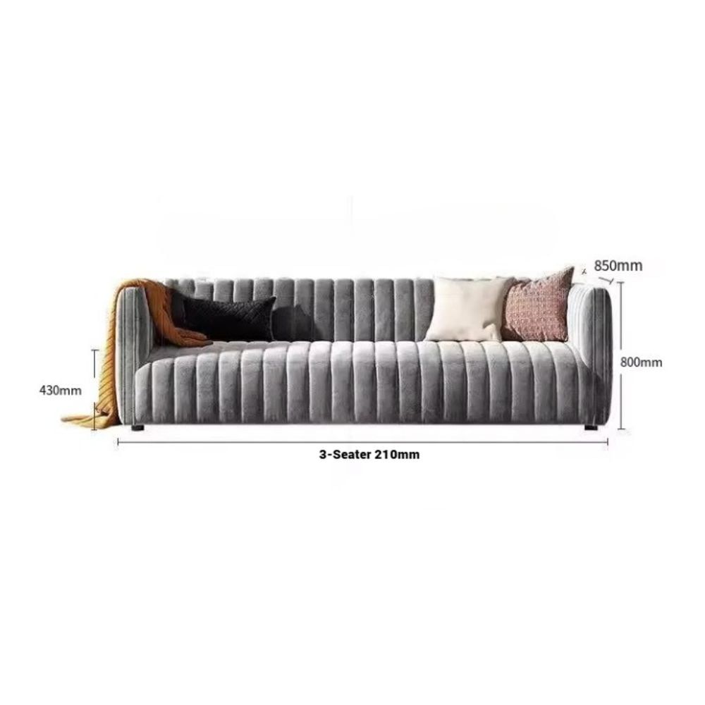 Elevate your living space with this elegant gray sofa, featuring a modern minimalist design enhanced by sophisticated channel tufting that offers a sleek, ribbed texture. Crafted from durable solid wood. Its refined construction and luxurious style deliver both comfort and timeless contemporary appeal.