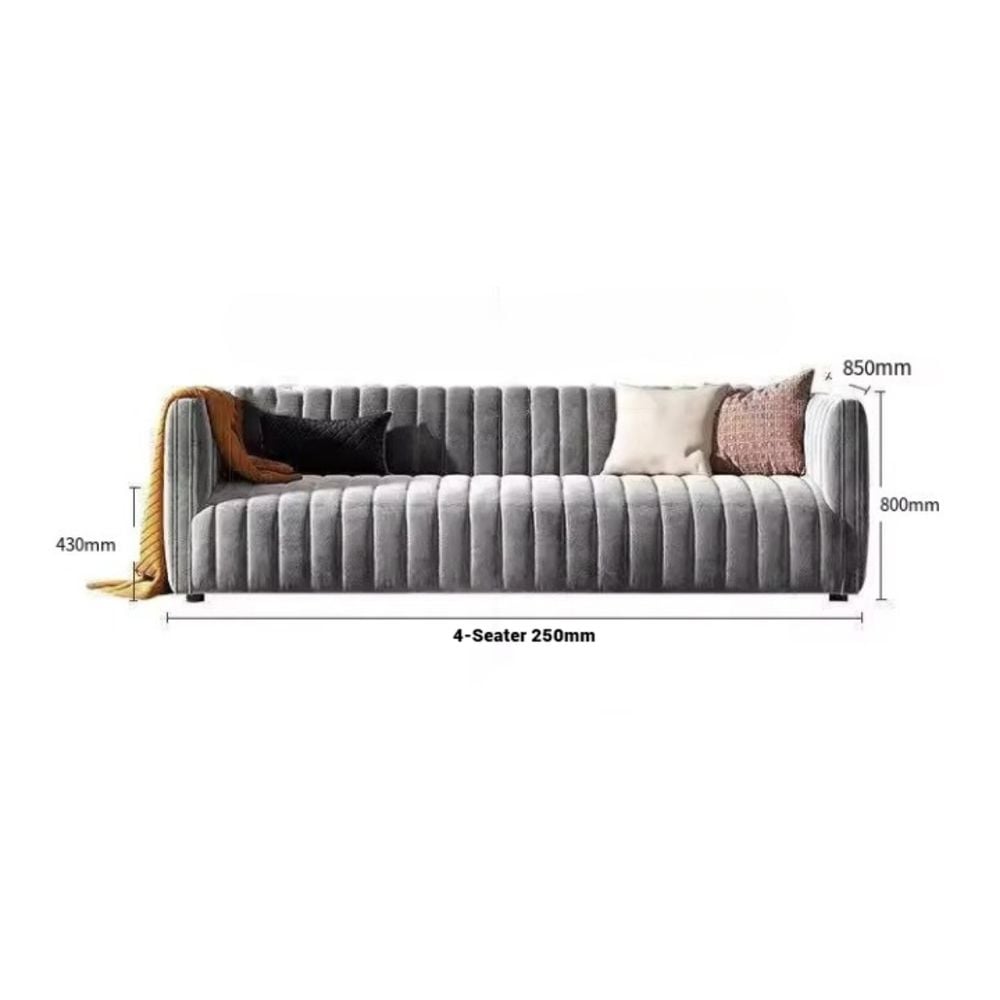 Elevate your living space with this elegant gray sofa, featuring a modern minimalist design enhanced by sophisticated channel tufting that offers a sleek, ribbed texture. Crafted from durable solid wood. Its refined construction and luxurious style deliver both comfort and timeless contemporary appeal.