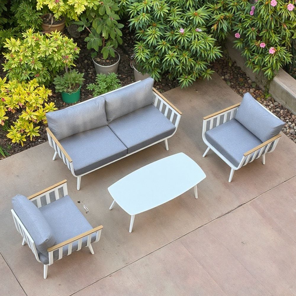 Elegant Outdoor White Aluminium Lounge Set – Modern White Frame with Grey Cushions