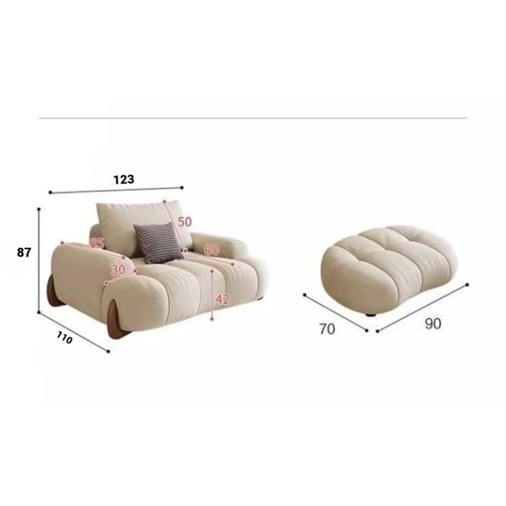 ERICA Living Room 1+2 Seater Puffy Sofa with Ottoman - Off White