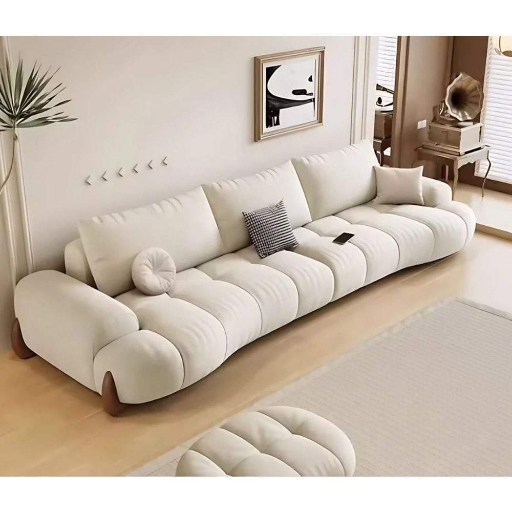 The ERICA 220 cm Puffy Sofa offers generous seating with a contemporary aesthetic. Designed with luxurious velvet upholstery and high-density foam, it ensures maximum comfort and lasting quality. Perfect for medium to large spaces seeking a touch of modern luxury.