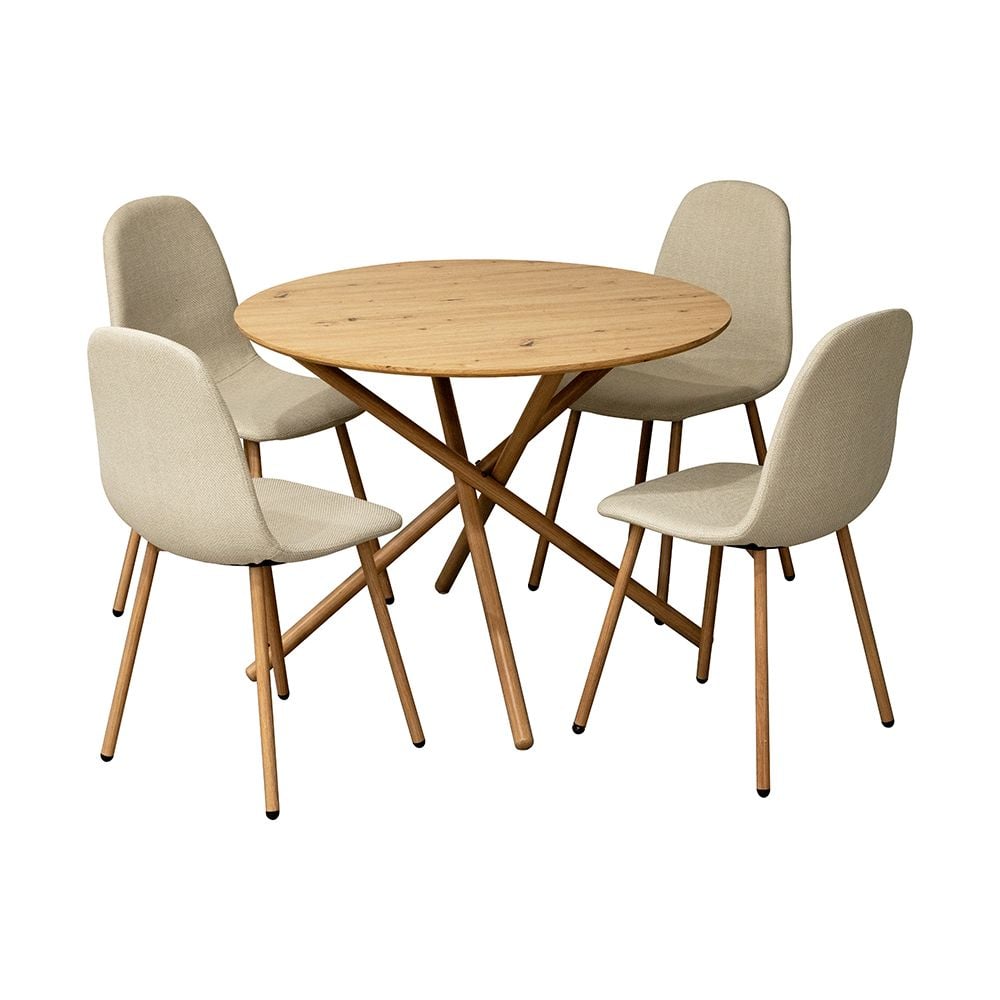 Eubank 1+4 Round Dining Set - Natural Oak/Beige