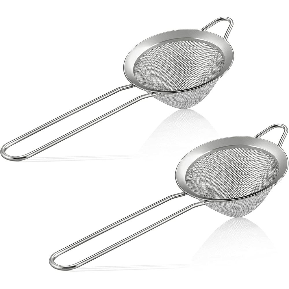 صور المنتج Fine Mesh Strainer, 2 Pcs 3.3 Inches Stainless Steel Tea Strainer with Long Handle تستخدم لأغراض التوضيح فقط. وقد يختلف لون المنتج قليلاً بسبب إضاءة التصوير أو إعدادات الشاشة.