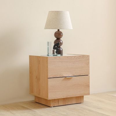 Float 2Drawers Night Stand W/Glass Top-Natural Oak