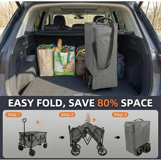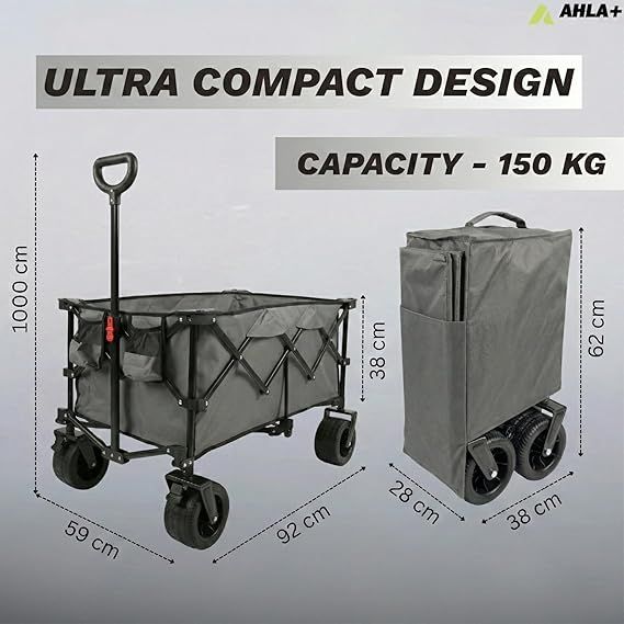 Foldable Wagon Trolley Cart - 150 KGS | Heavy-duty Trolley for Shopping, Camping, Beach, Picnic | Shopping Trolley with Adjustable Handle and 360° Wheels | Multipurpose Camping trolley