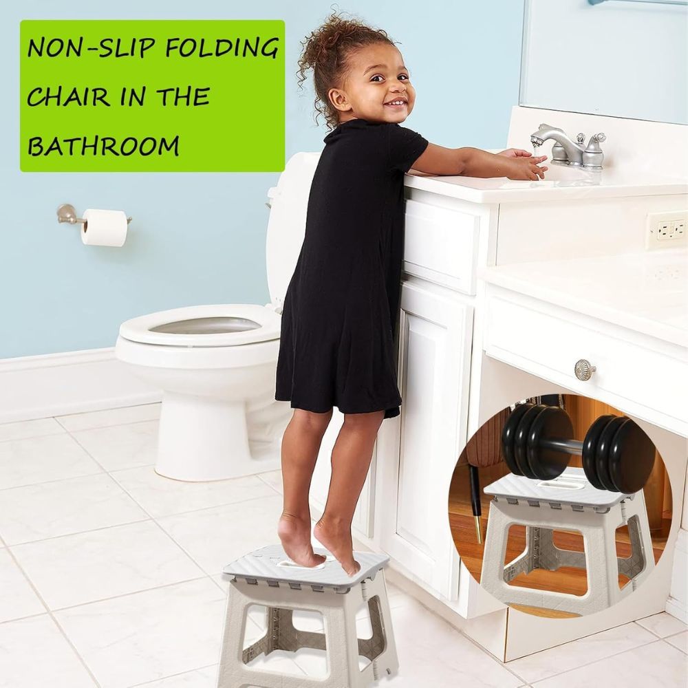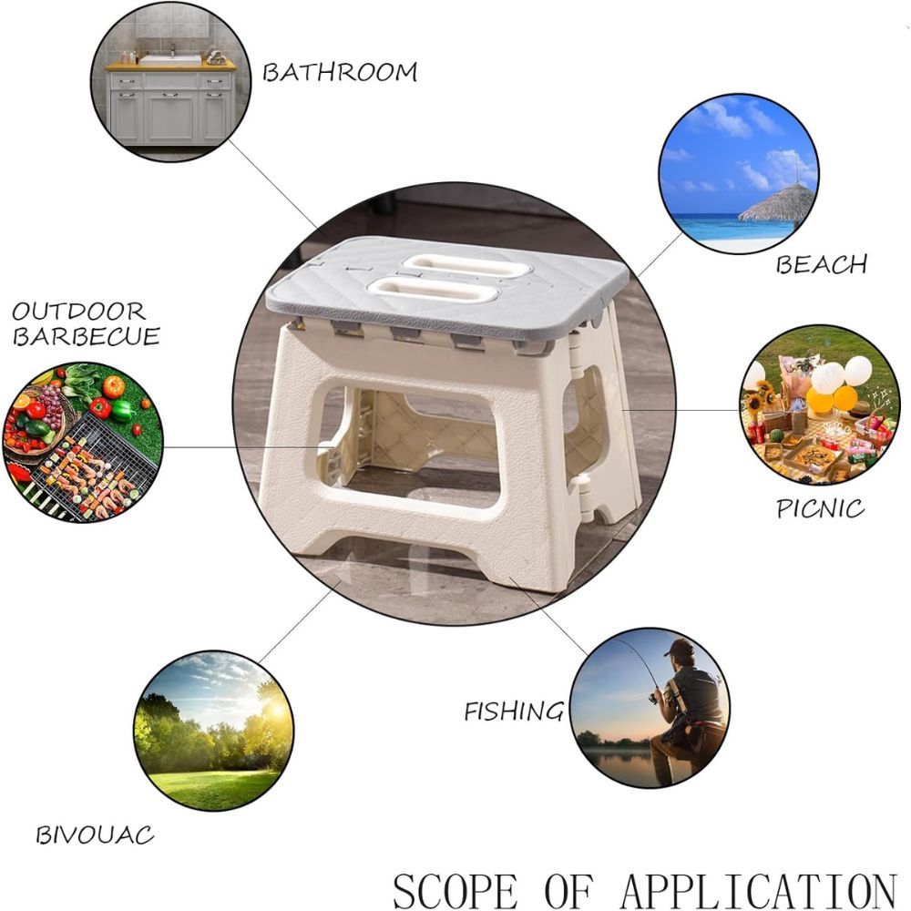 Folding Step Stool for Adults and Kids, Non-Slip Step Foot Stool for Bathroom, Kitchen, Office, Portable Collapsible Chair with Handle, Outdoor Camping, Fishing, Travel, BBQ