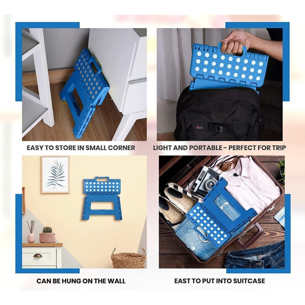 Folding Step Stool for Kids Adults, Portable Collapsible Foot Stools 9 Inch Height, Foldable Plastic Stool for Kitchen, Bathroom, Garden, Indoor, Stool Lightweight Outdoor (Blue)