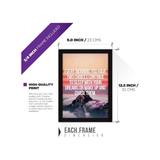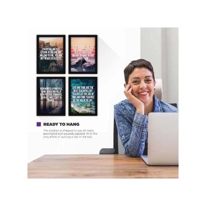 Framed Dreams Wall Paintings Life Quotes For Office Decor And Home With Glass (Synthetic, Multicolour) - Set Of 4