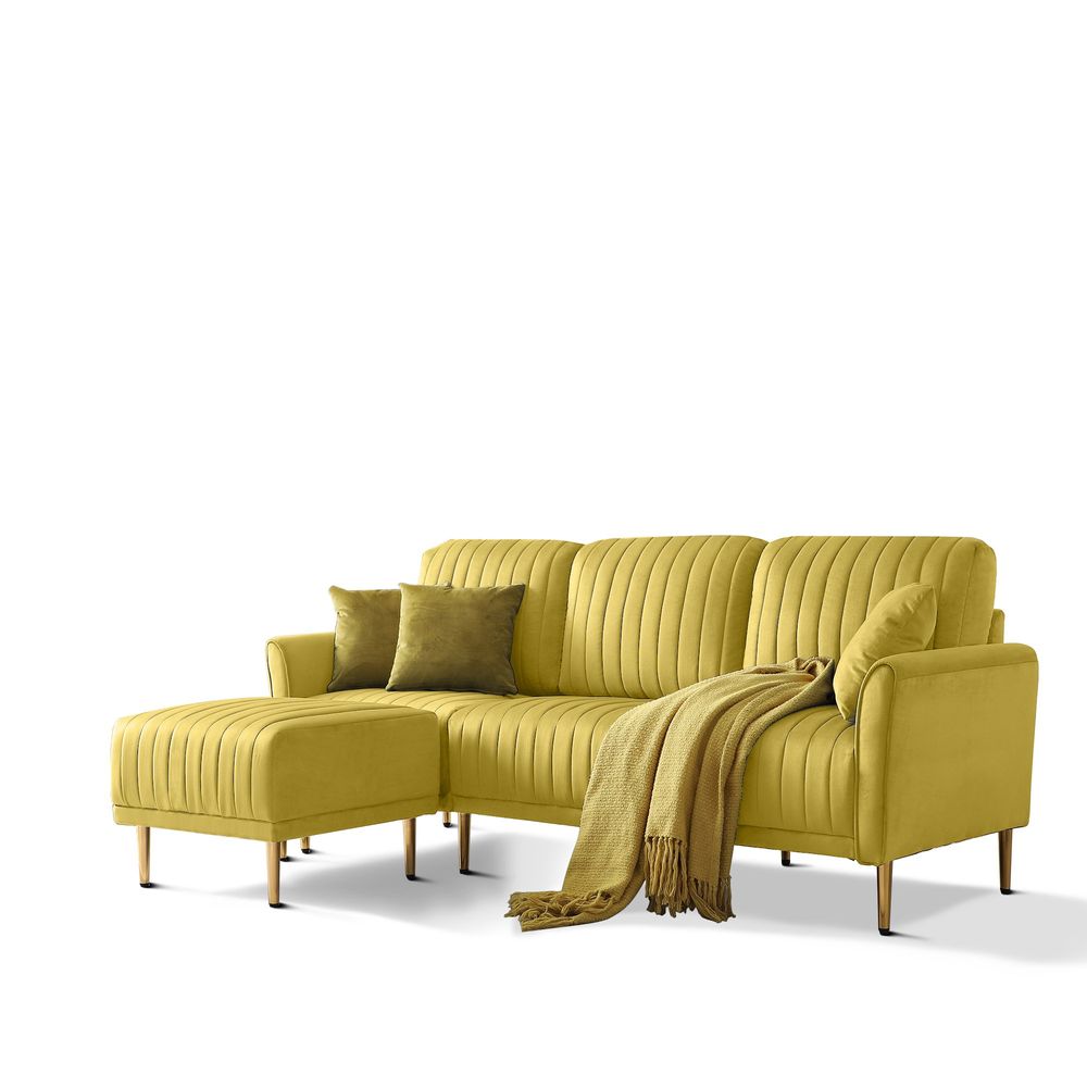 Living Room Sectional Sofa with Ottoman - Gold, 200cm W x 85cm D x 90cm H