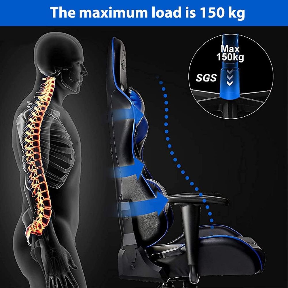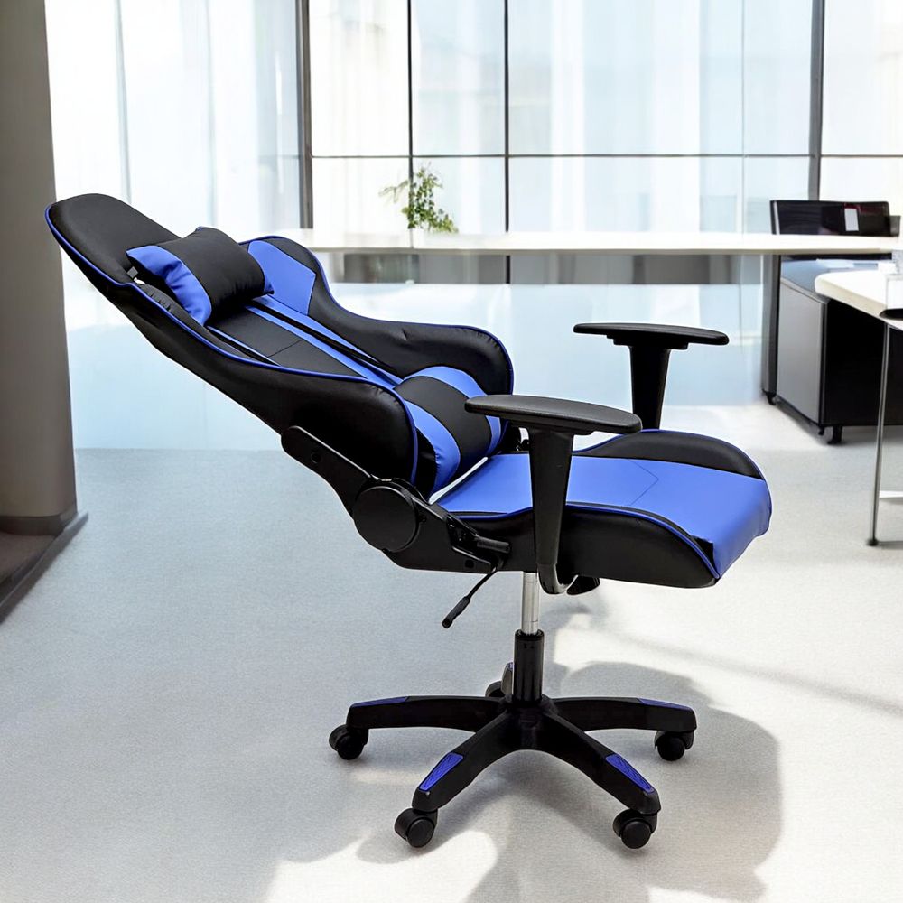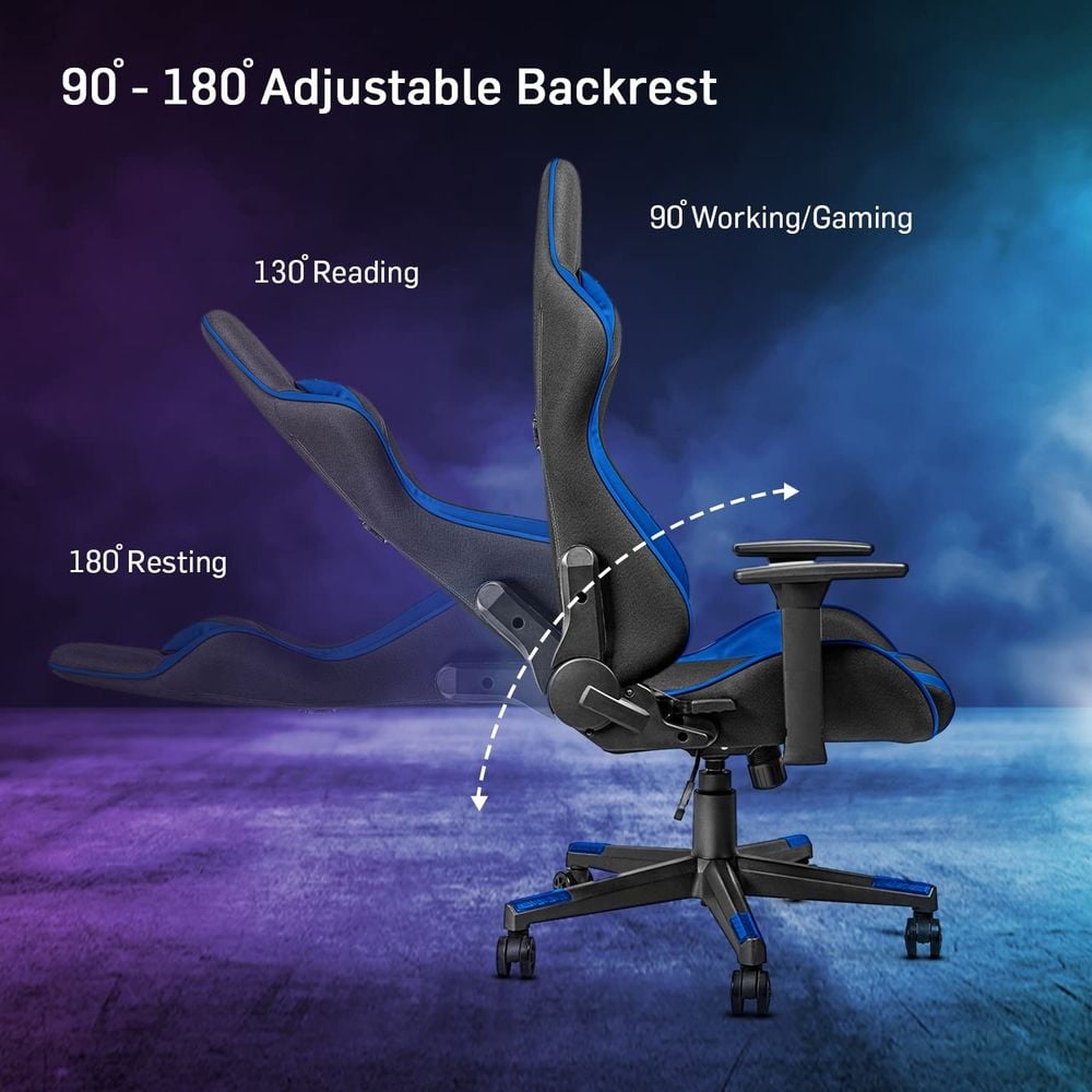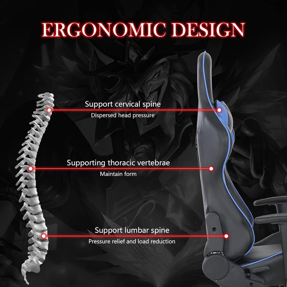 Gaming Chair Office Chair, Reclining High Back PU Leather Desk Chair with Headrest and Lumbar Support, Adjustable Swivel Video Game Chair, Ergonomic Racing Computer Gaming Chair (Blue Black)