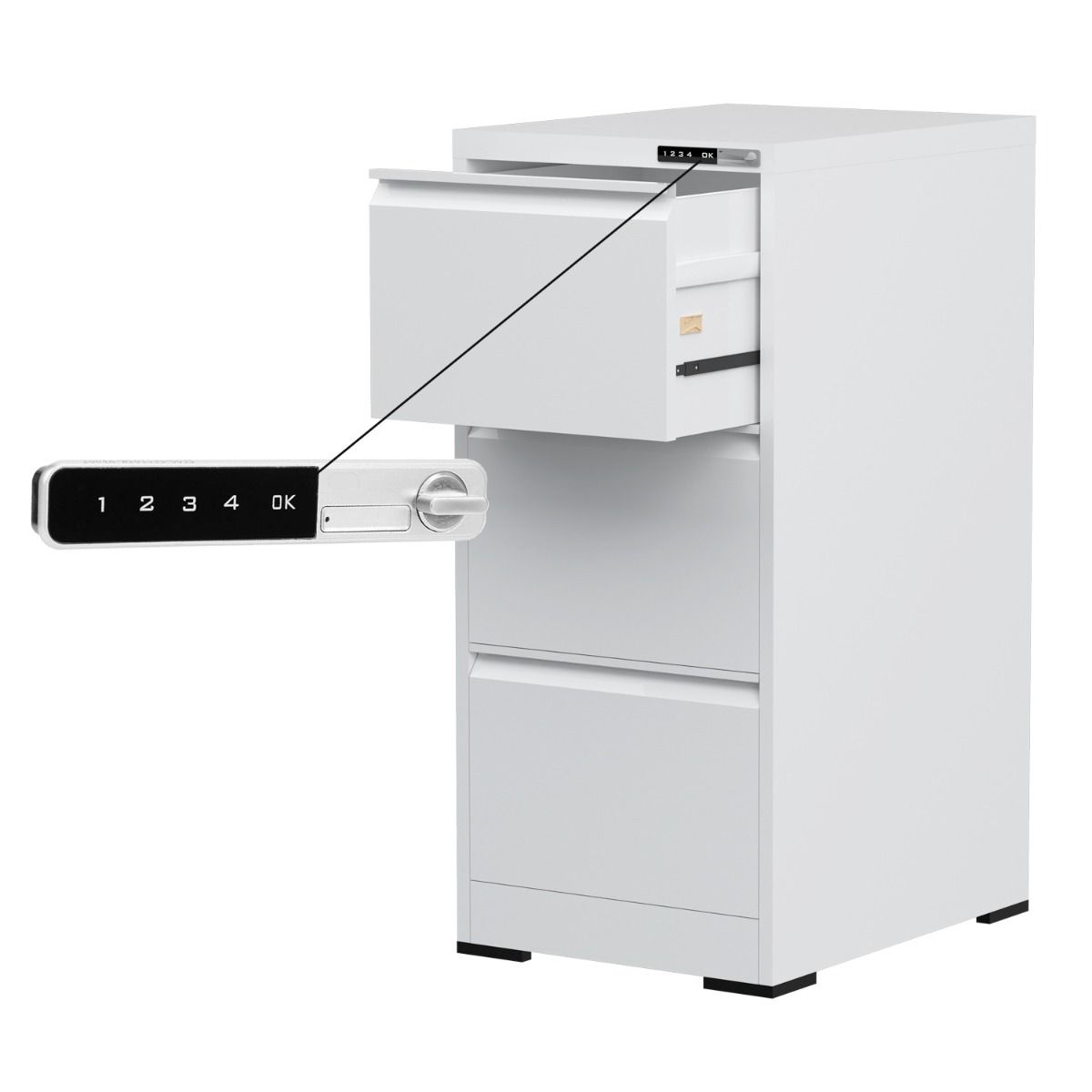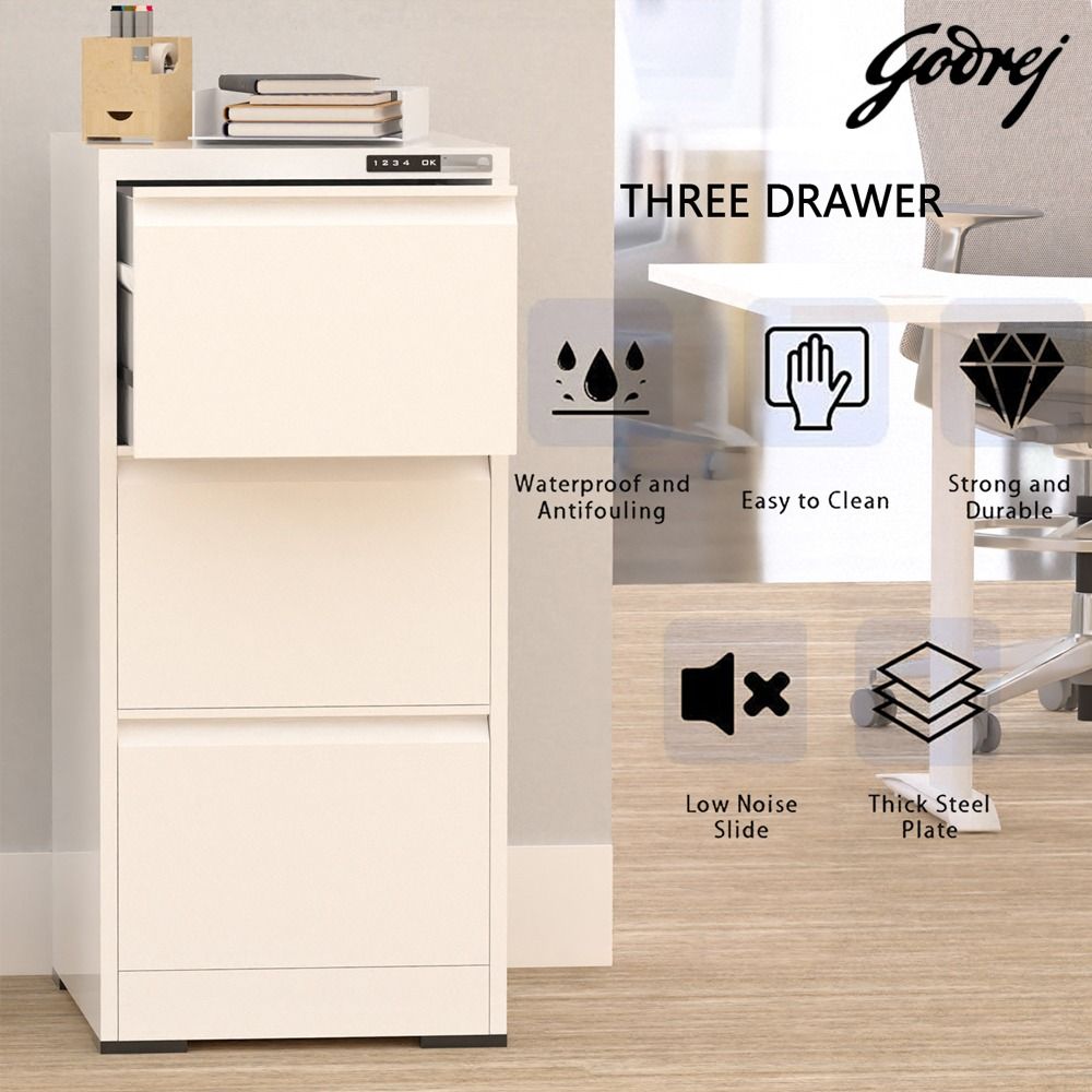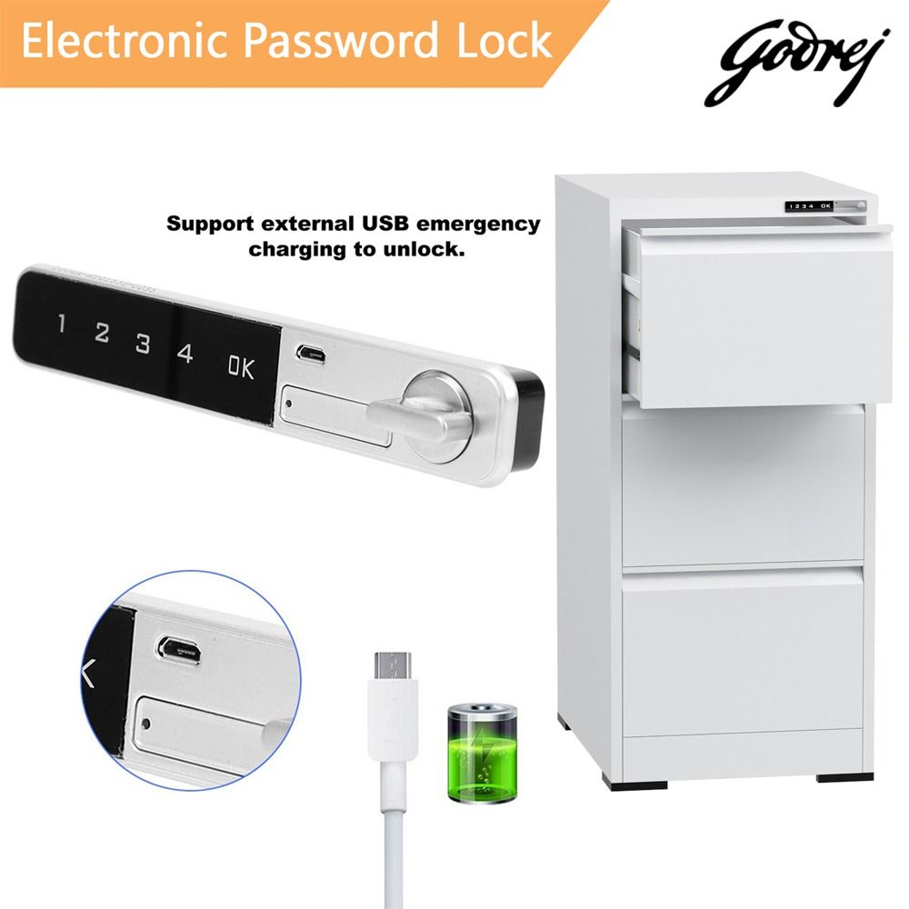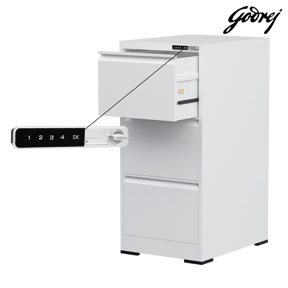 Godrej 3 Drawer Digital Filing Cabinet with Touch Screen Lock, Heavy-Duty Steel, and Scratch-Resistant White Finish