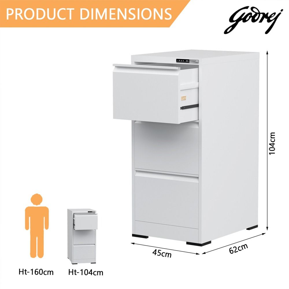 Compact yet spacious, the cabinet fits neatly into tight spaces, making it suitable for offices, co-working spaces, and home workstations. With its combination of advanced features, superior craftsmanship, and elegant design, the Godrej 3 Drawer Digital Filing Cabinet White sets a new standard in secure and stylish storage solutions.