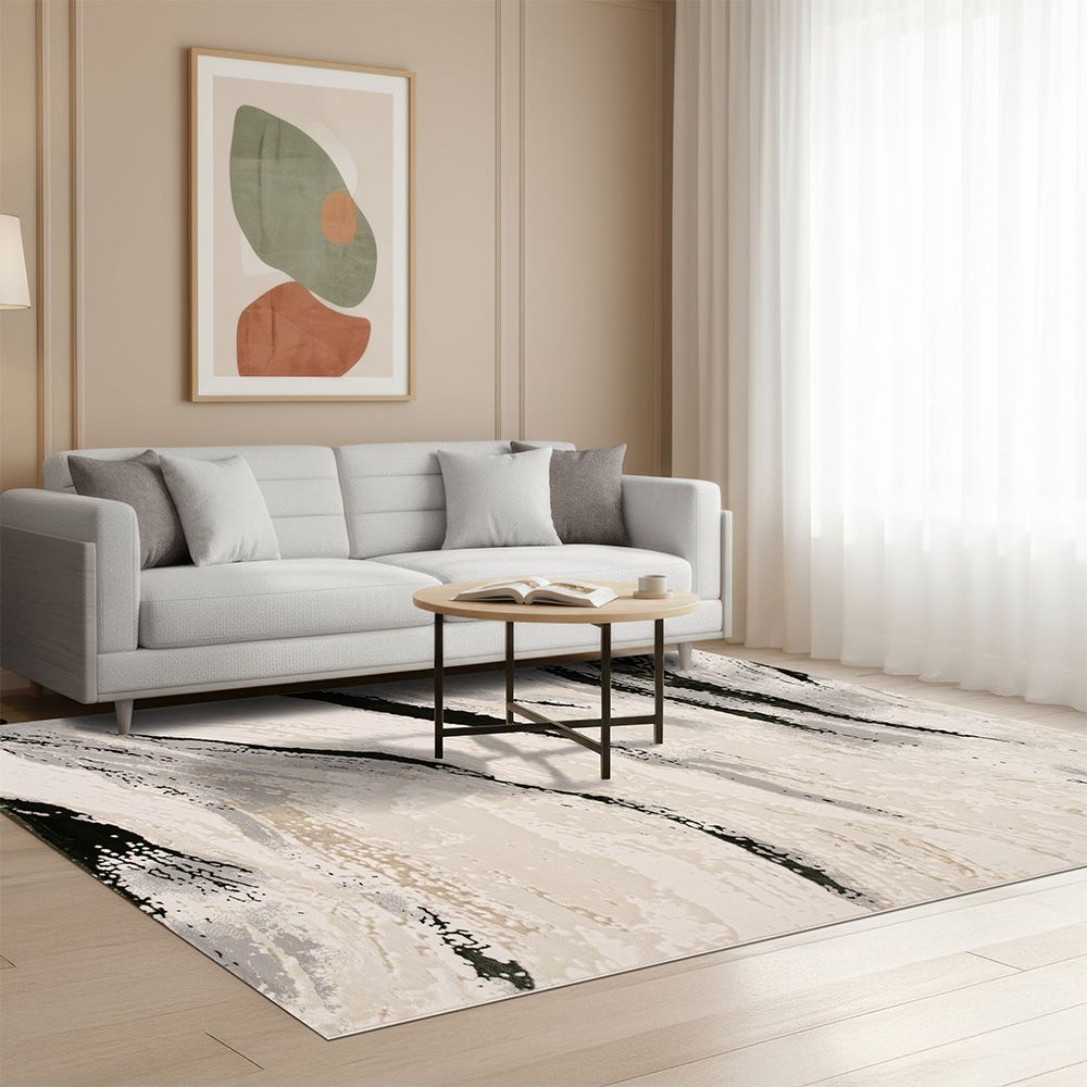 Airing and vacuuming will help to eliminate the smell that Rug can have when its new.