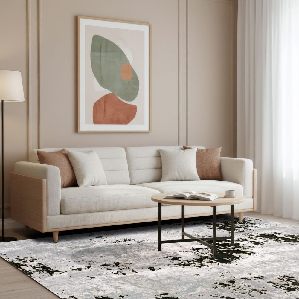 Airing and vacuuming will help to eliminate the smell that Rug can have when its new.