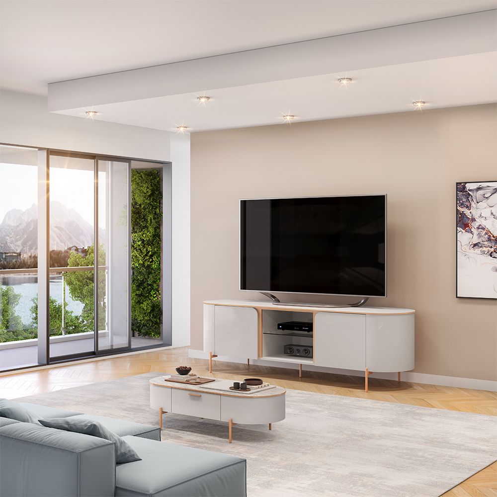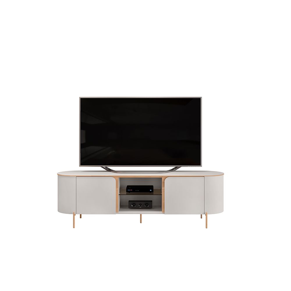 Havant Tv Unit With 2Doors & Open Shelves Up To 65 Inch - Off White/Brown