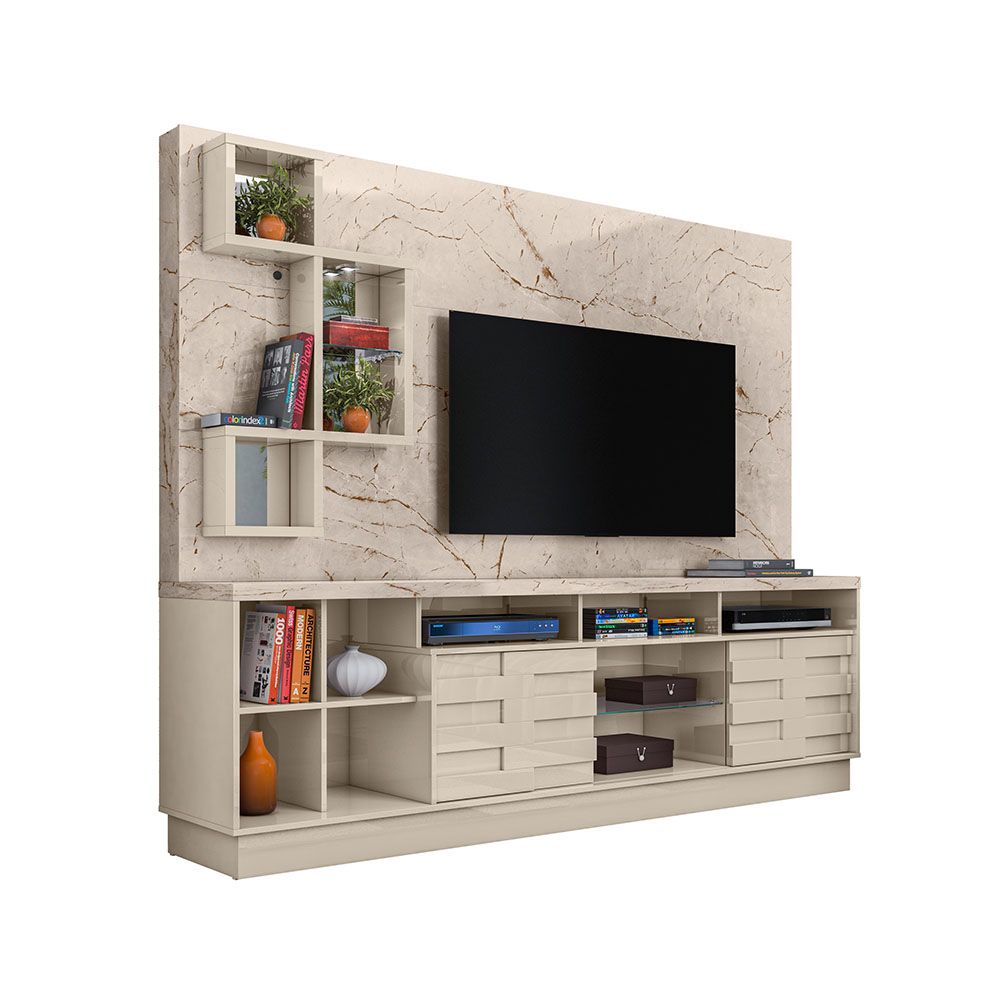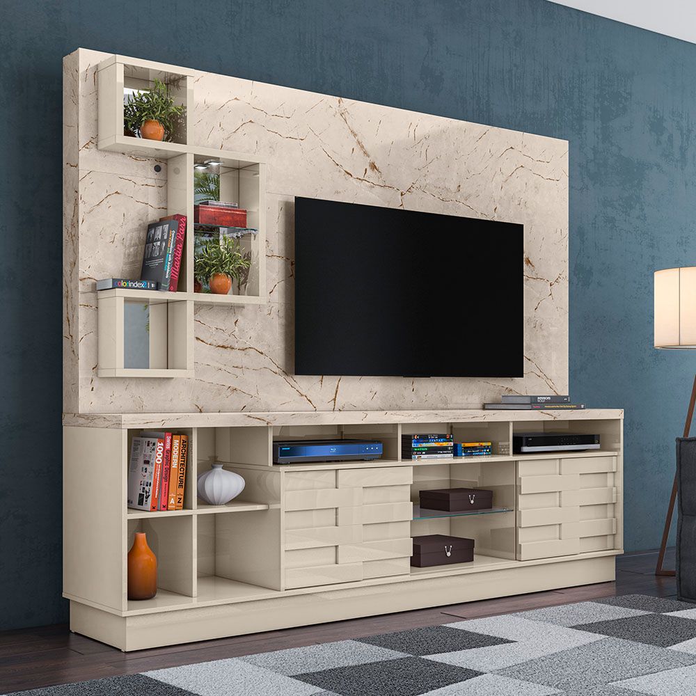 Crafted in solid wood, the Heitor home theater cabinet, in off-white color is an ideal fit for contemporary living rooms.