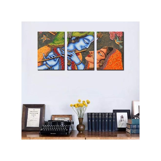 Hindu God Canvas Wall Art For Living Room Decor 3 Pcs Sri Krishna And Radha Painting Indian Religious Kitchen Wall Decor Hinduism Religion Wall Decorations For Living Room Wall Pictures 12X16 Inch