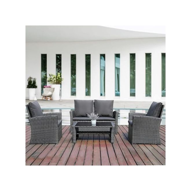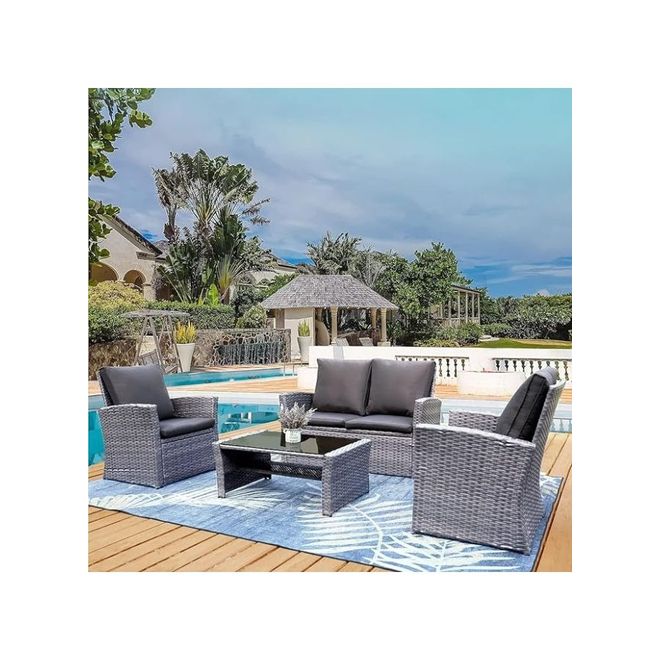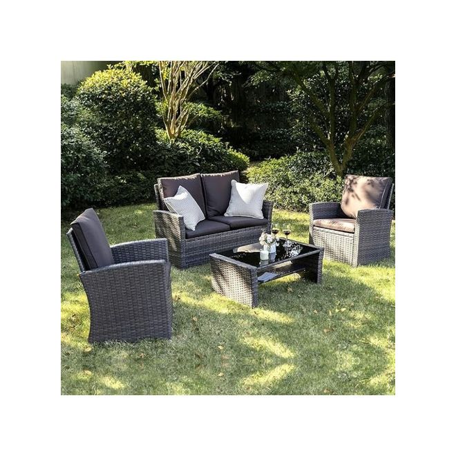 Upgrade your outdoor living space with the Harmony Home 4-Piece Rattan Garden Lounge Set, designed to bring style, comfort, and durability to your patio, garden, terrace, or balcony.