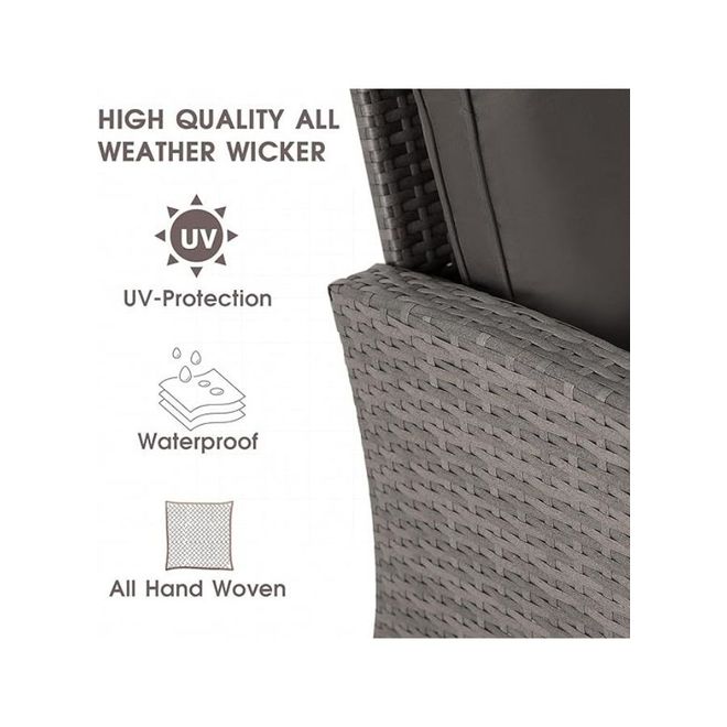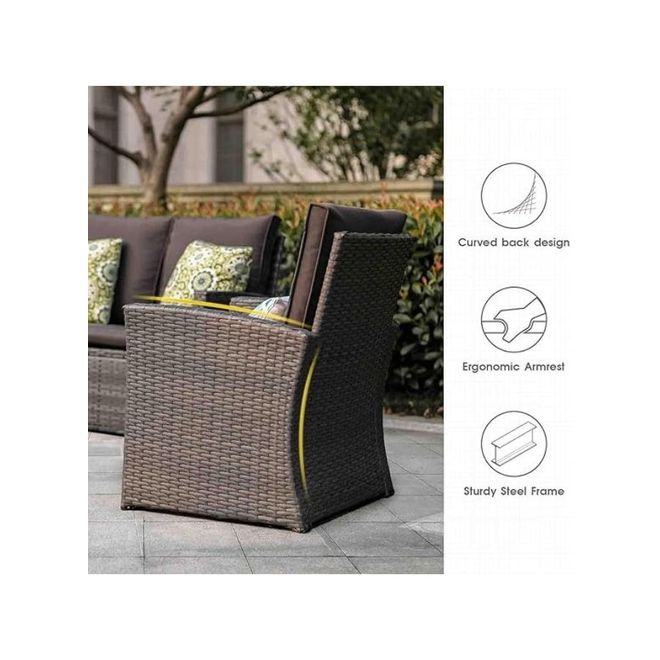 Constructed from weather-resistant and waterproof PE rattan, this lounge set is designed for year-round outdoor use.