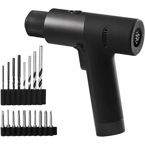 HOTO Cordless Brushless Drill 12V, LED Display Screen, 30 Precision Gears, 2 Working Modes, 2000mAh Battery, 266 In-lbs (30N·m) Torque, 3/8 Inch Keyless Chuck, 1400RPM, 10 x Bits, 8 x Drill Bits