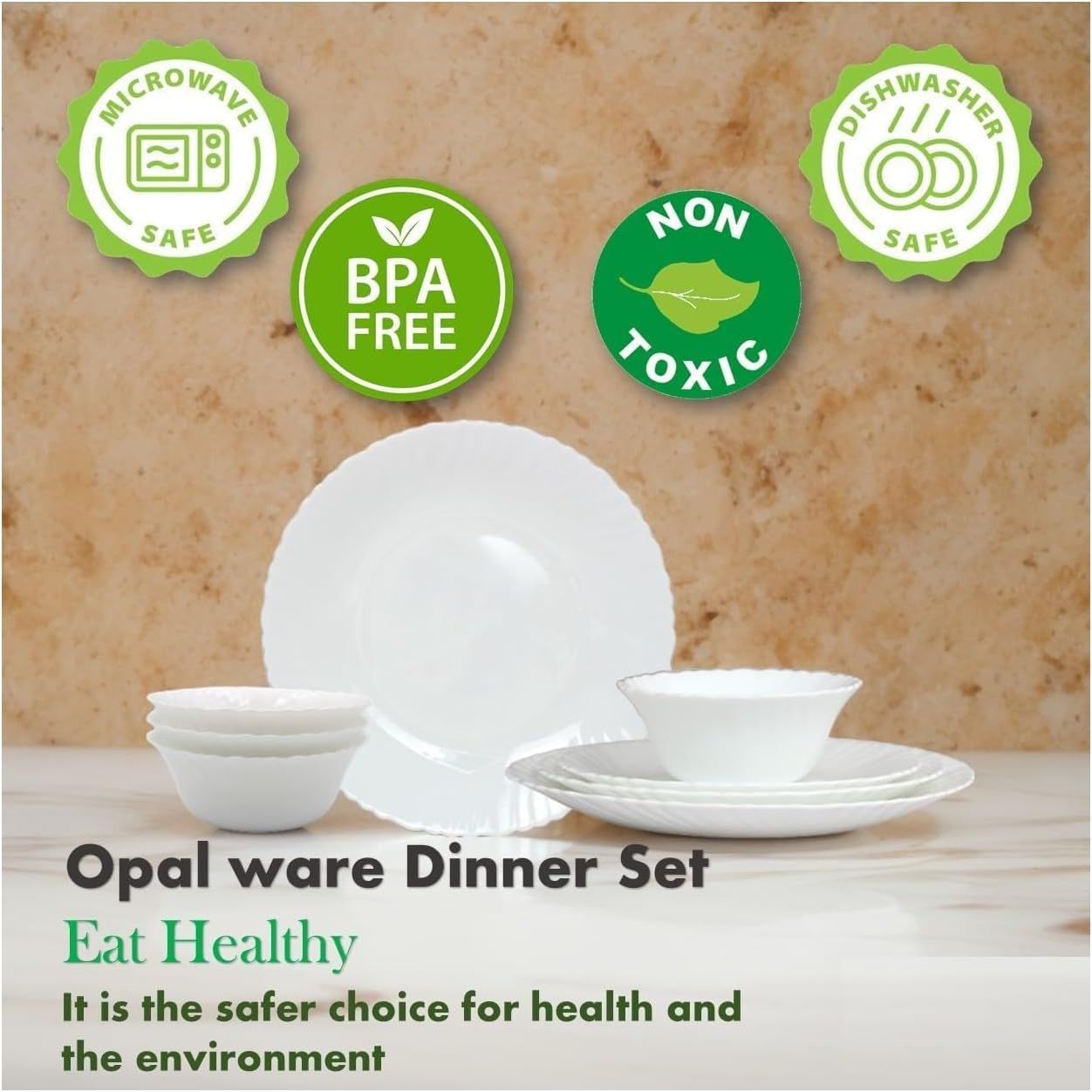 Crafted from high-quality opal glass, this dinnerware is lightweight, long-lasting, and beautifully designed