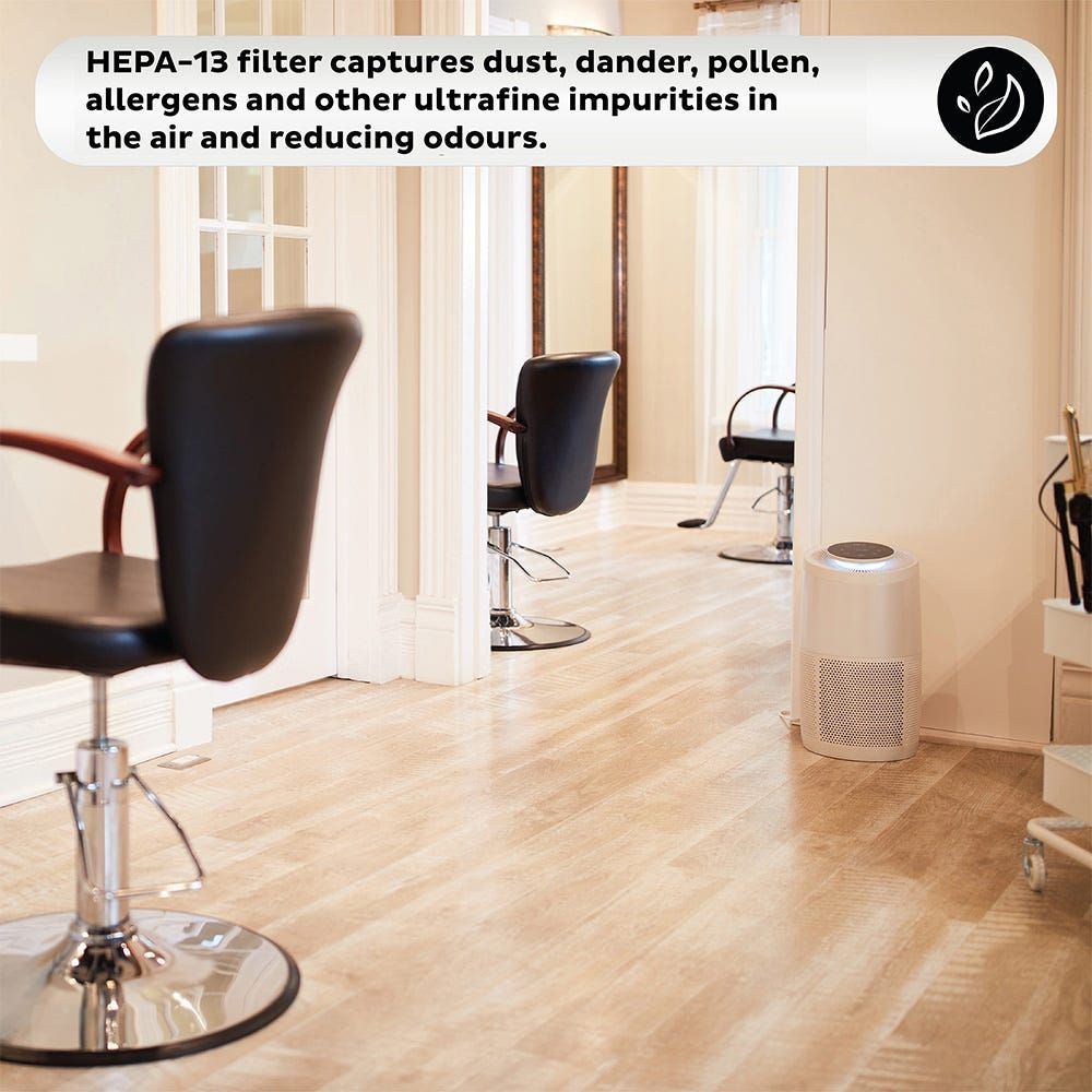 PROVIDES CLEANER AIR IN MINUTES: HEPA-13 filter captures dust, dander, pollen, allergens, and other ultrafine impurities in the air. Operating at AHAM-verified clean air delivery rate.