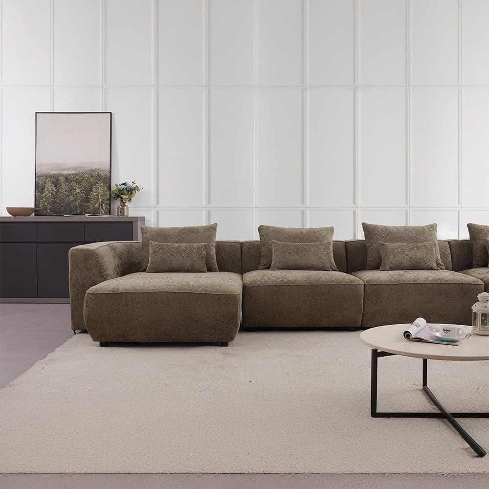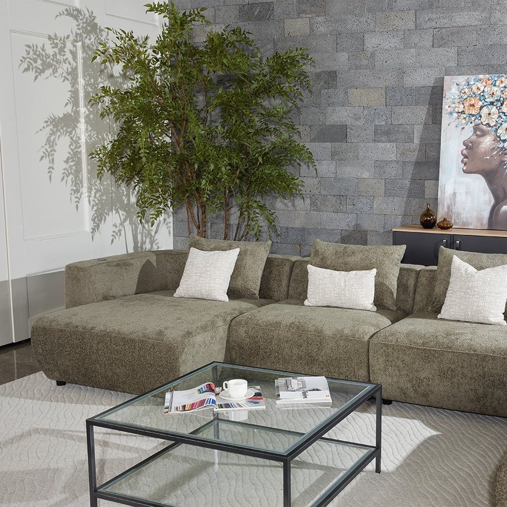 Jiro Sectional Corner Fabric Sofa - Olive