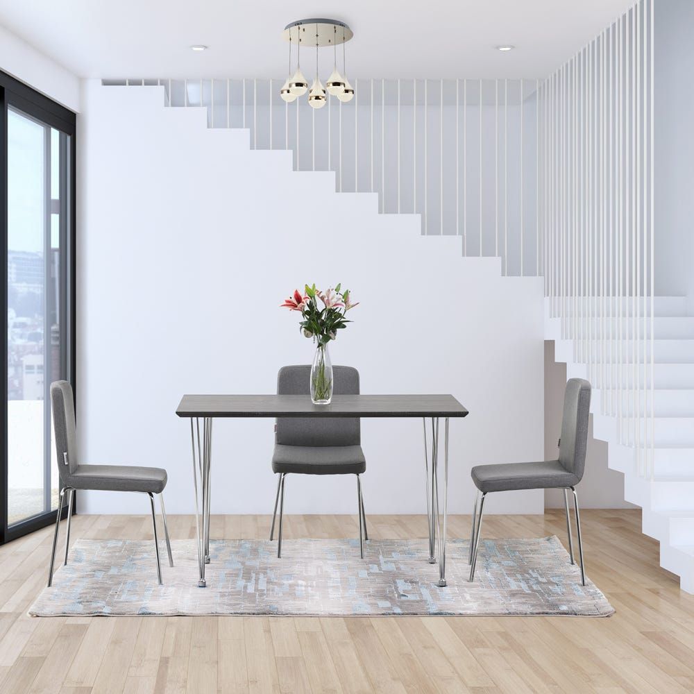 Eye catching MDF wood top table with steel legs with modern unique chair designs liven up your kitchen. The beautiful design of Juan 1+4 Dining Set would surely be loved by your guests specially by your family members. Add this on your cart now!