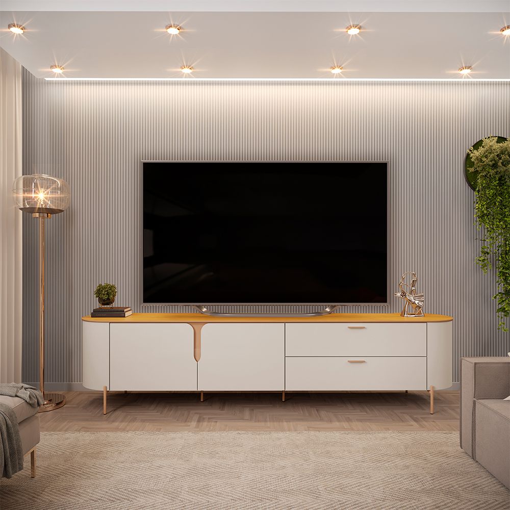 Kaido Tv Unit With 2Doors & 2Drawers Up To 75 Inch - L.Beige/Brown