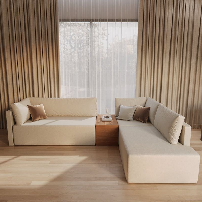 This luxurious L-Shaped Sofa features clean lines, supportive cushions, and wide armrests, combining structure with plush comfort