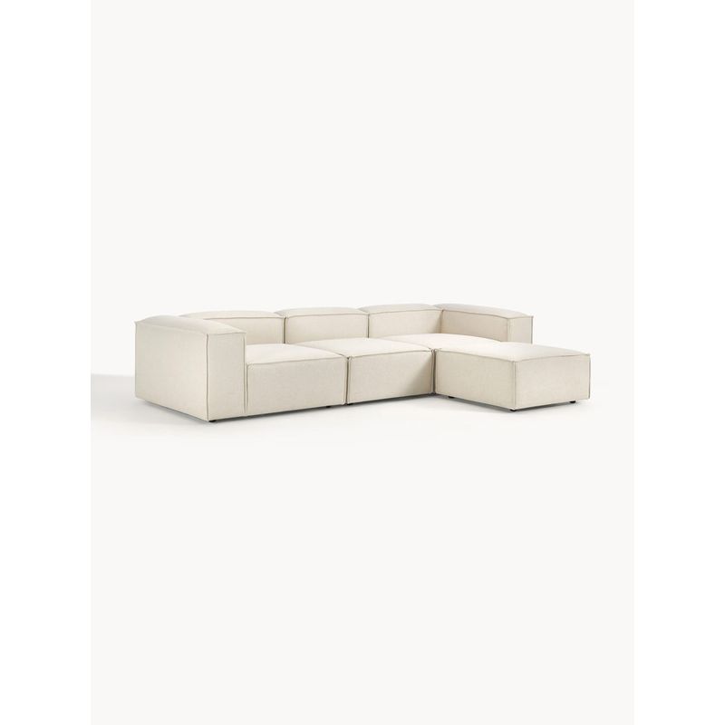 this L-Shaped Sofa features premium beige upholstery, plush cushioning, and a durable solid frame, offering both style and longevity