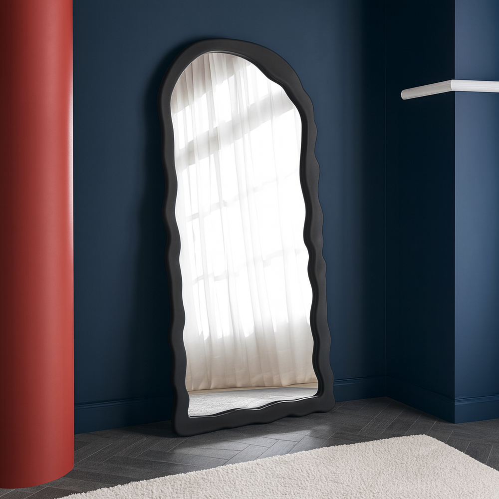 Luxury Ripple Leaner Mirror – Modern Decorative Arch Frame for Elegant Wall Décor (Black)