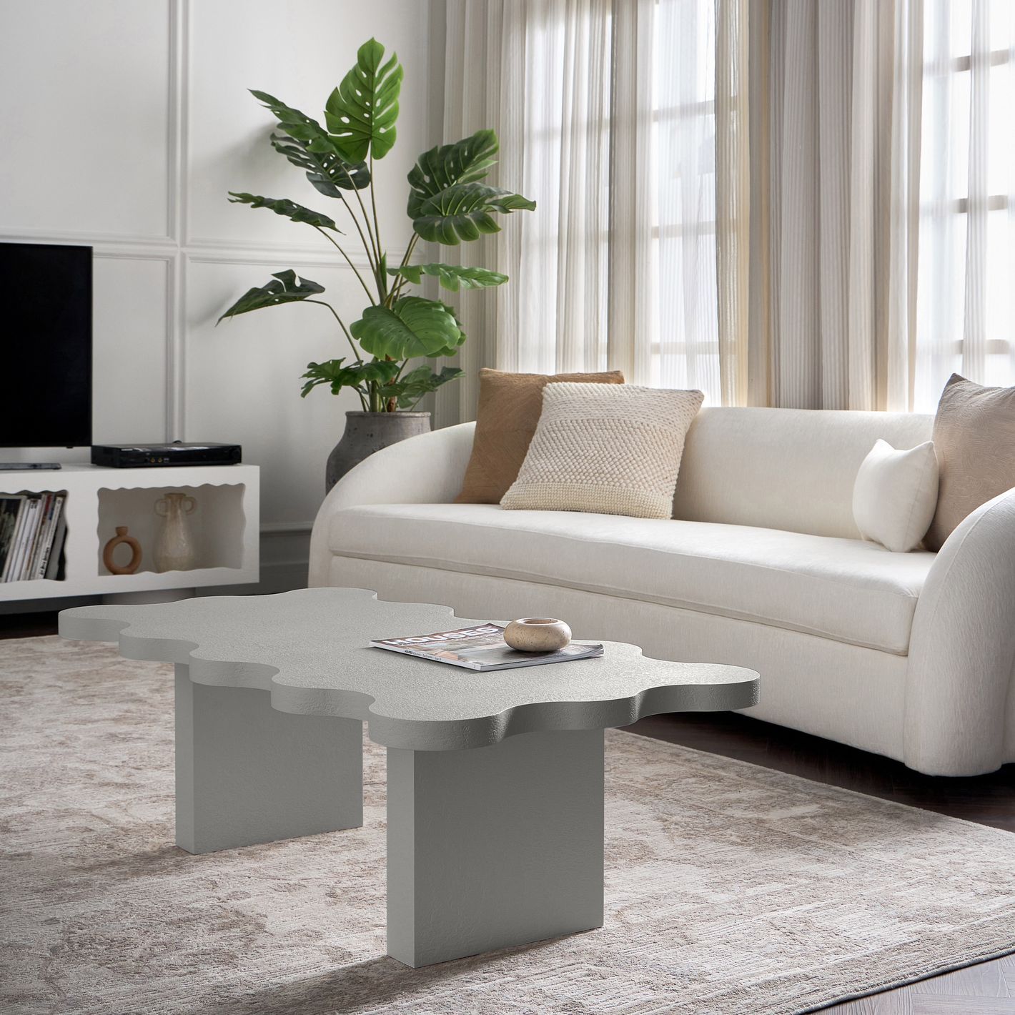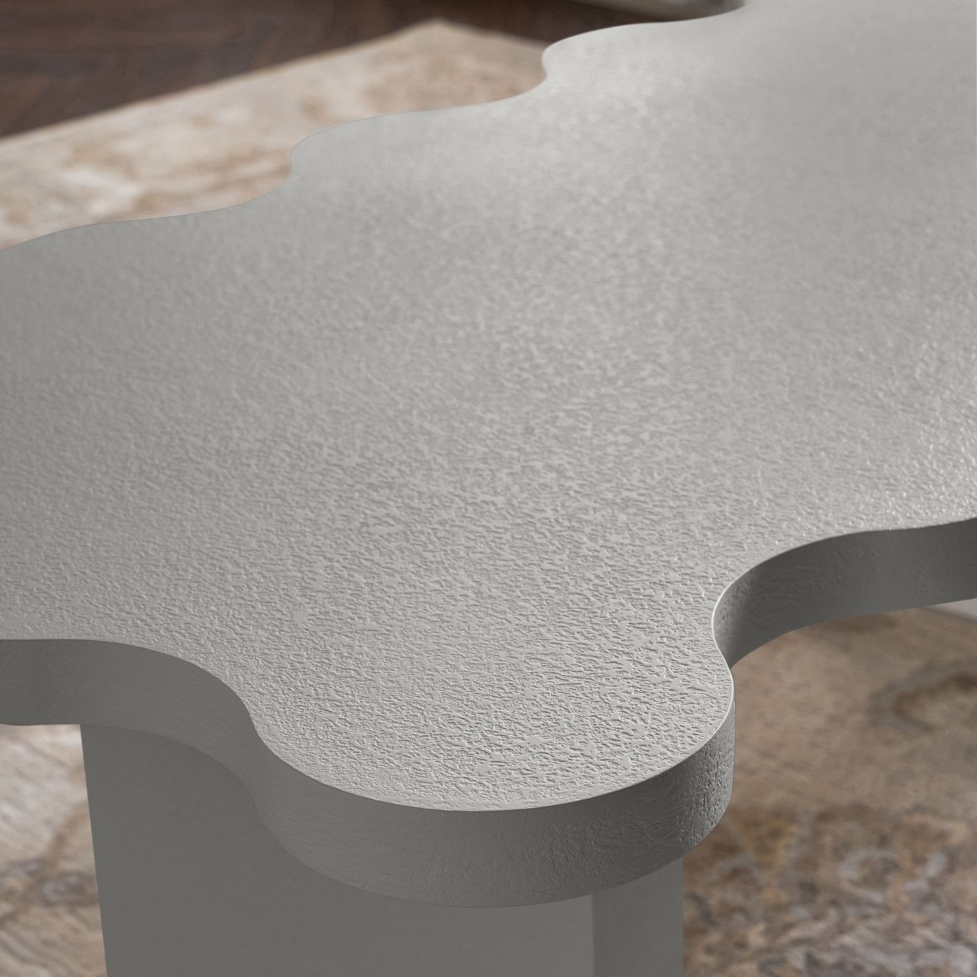 Featuring a captivating wavy tabletop and a textured finish, this unconventional design transforms your space into a gallery of style
