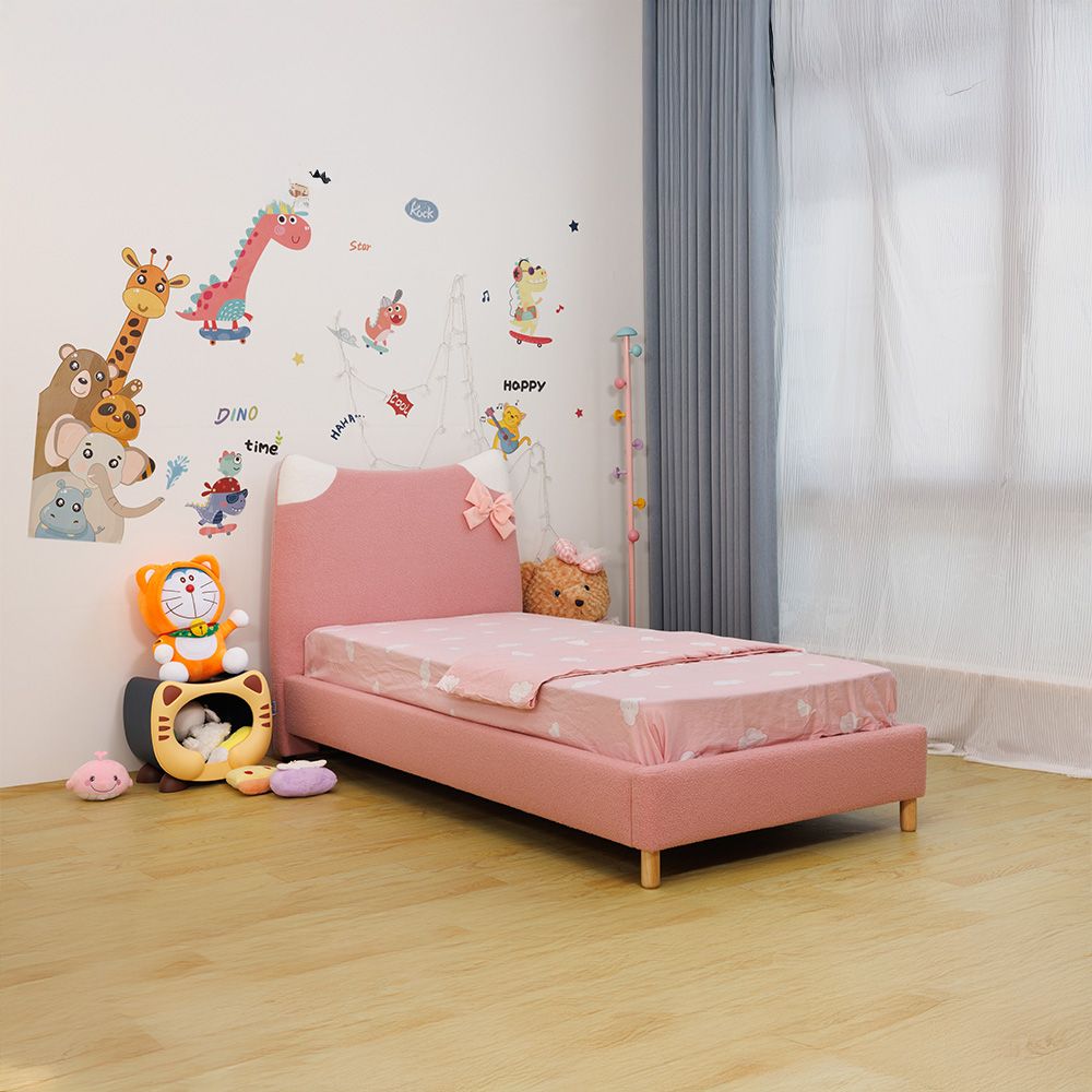 Kitty 90x200 Upholstered Kids Bed-Light Pink