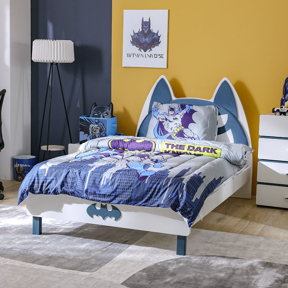 Knight 120x200 Bed With Upholstered Headboard-White+Teal Blue
