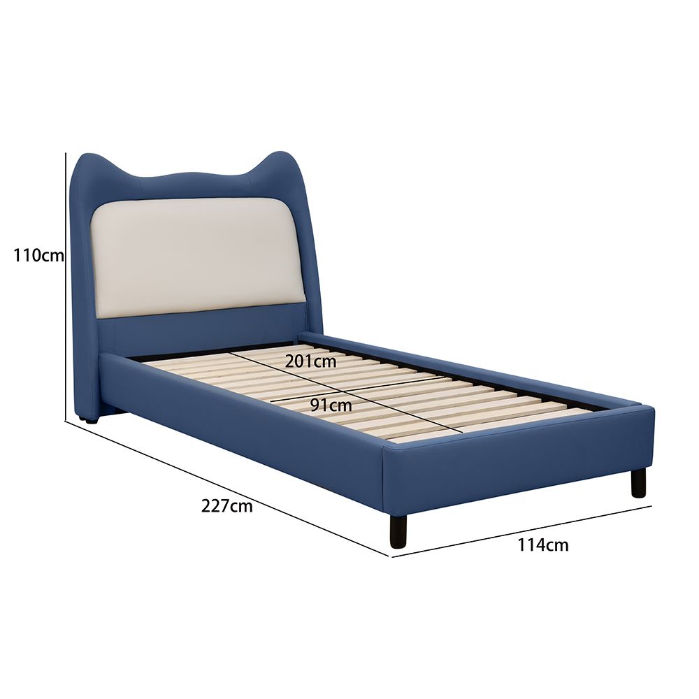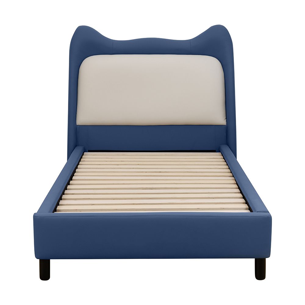 Knight 90x200 Upholstered Kids Bed- Blue & Light Grey