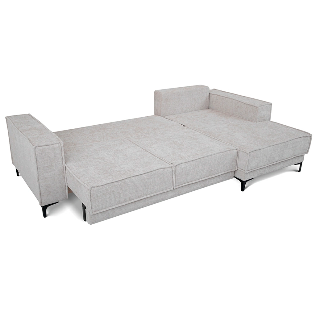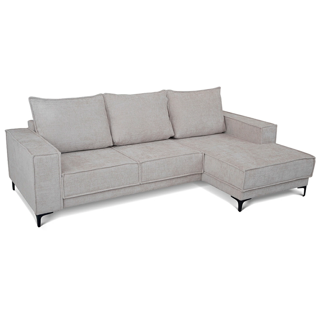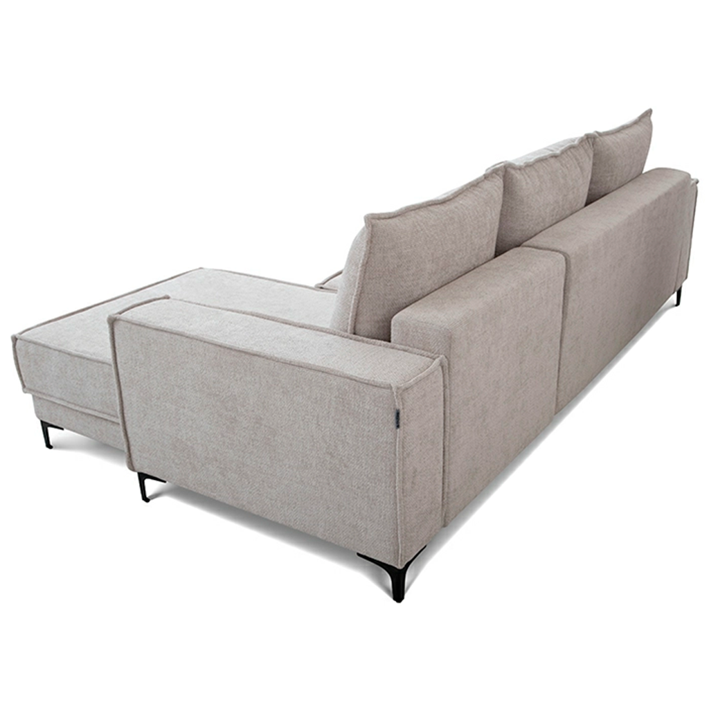 L-shape sofa bed «Mason» represents an elegant style scandy. The modern look, ergonomics and functionality. Thanks to these qualities, the sofa is perfect for any living room whether it’s an apartment or a country house. Unusual for the scandinavian style, and a bright decorative element of the model is a French seams. It creates lightness and gives the appearance of the sofa a shade of freedom. The corner sofa consists of two sections: main module and the chaise. Both sections have storage boxes.