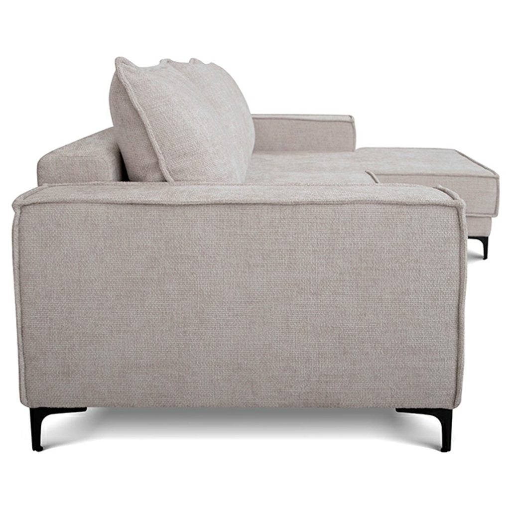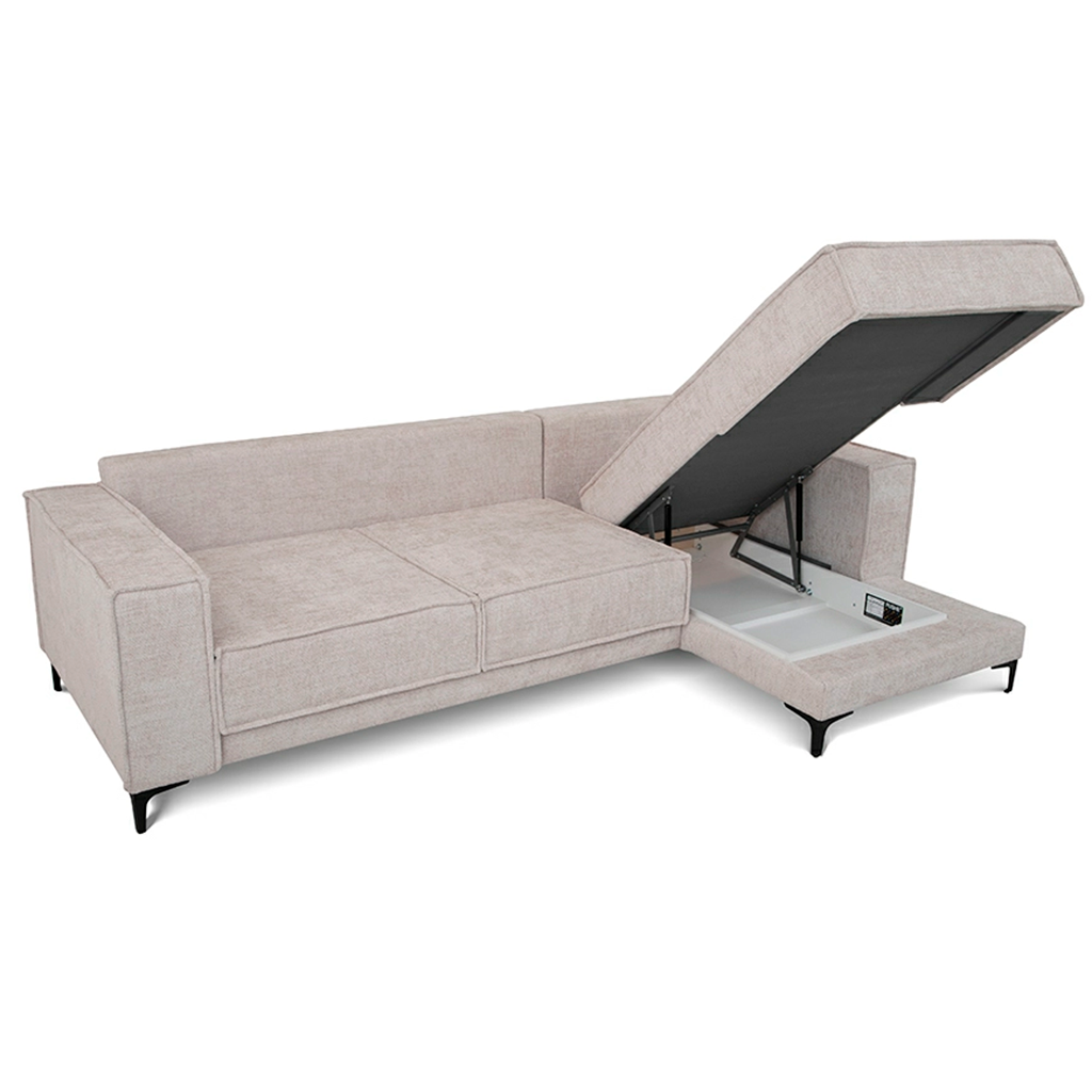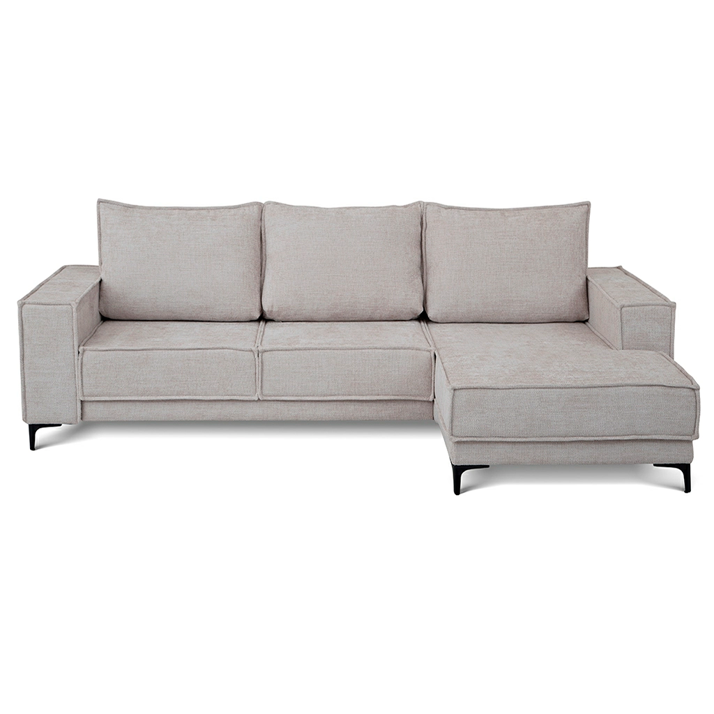 L-shape sofa bed «Mason» represents an elegant style scandy. The modern look, ergonomics and functionality. Thanks to these qualities, the sofa is perfect for any living room whether it’s an apartment or a country house. Unusual for the scandinavian style, and a bright decorative element of the model is a French seams. It creates lightness and gives the appearance of the sofa a shade of freedom. The corner sofa consists of two sections: main module and the chaise. Both sections have storage boxes.