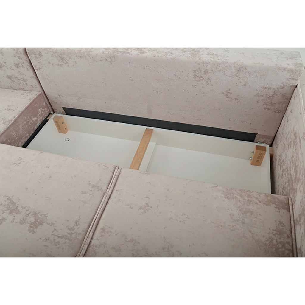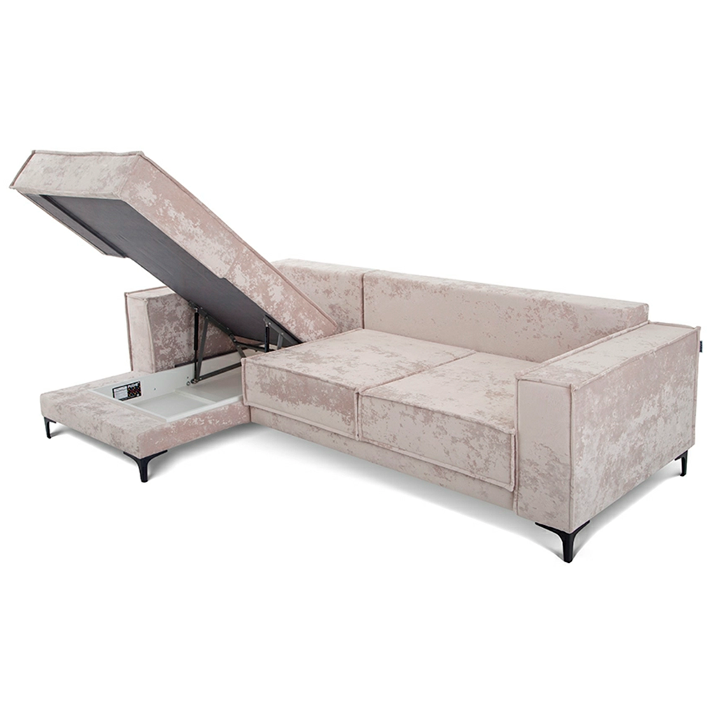 L-shape sofa bed «Mason» represents an elegant style scandy. The modern look, ergonomics and functionality. Thanks to these qualities, the sofa is perfect for any living room whether it’s an apartment or a country house. Unusual for the scandinavian style, and a bright decorative element of the model is a French seams. It creates lightness and gives the appearance of the sofa a shade of freedom. The corner sofa consists of two sections: main module and the chaise. Both sections have storage boxes.