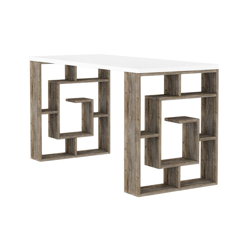 Mourah Labirent Working Table With Storage - White/Dark Coffee - 2 Years Warranty